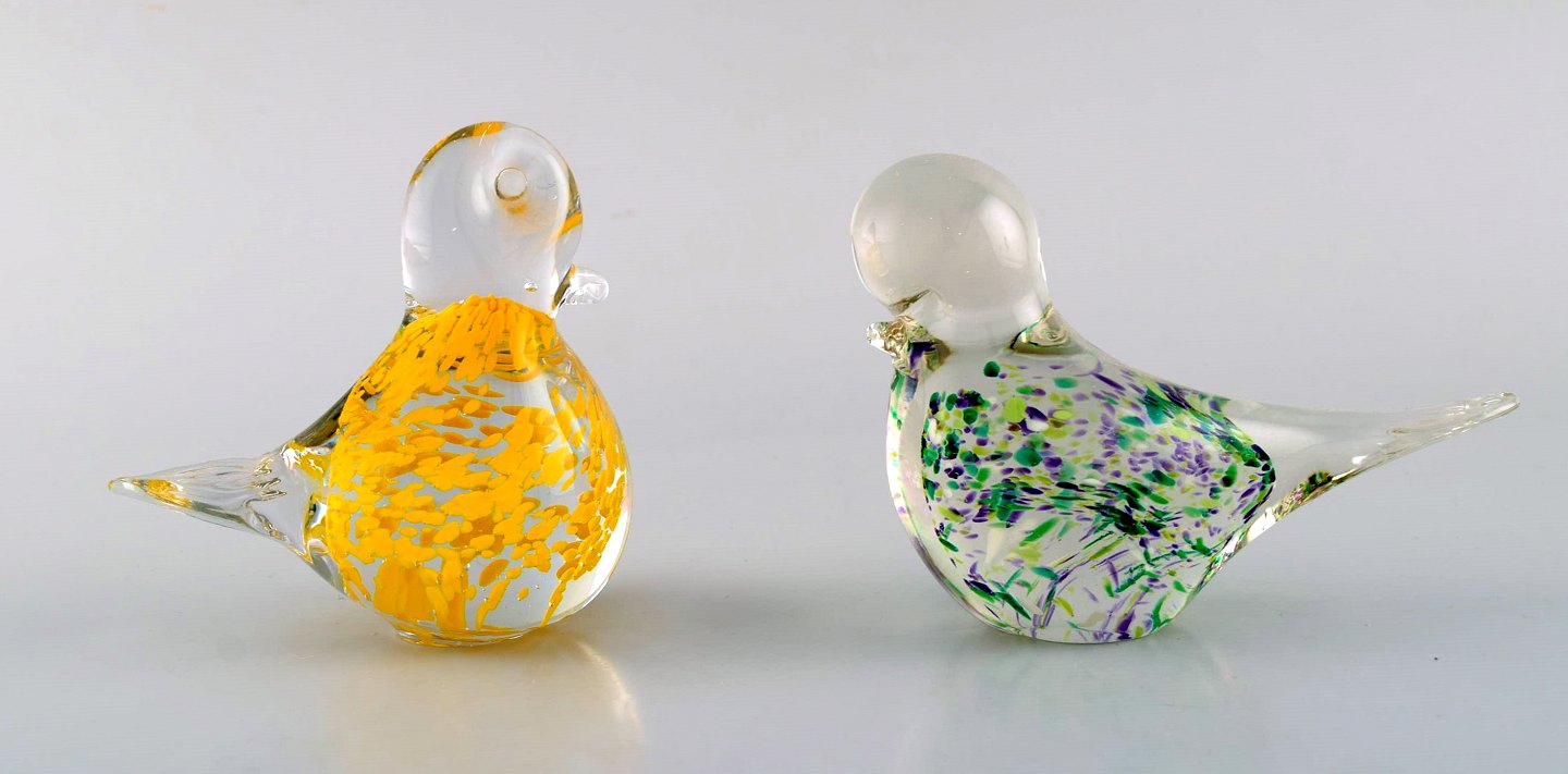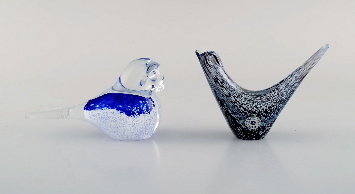 Svenske m.fl. glaskunstnere, heriblandt Reijmyre. Otte figurer af fugle i kunstglas. 1980'erne. Største måler: 15,5 x 11 cm. I flot stand. Nogle stemplet og med mærkat.