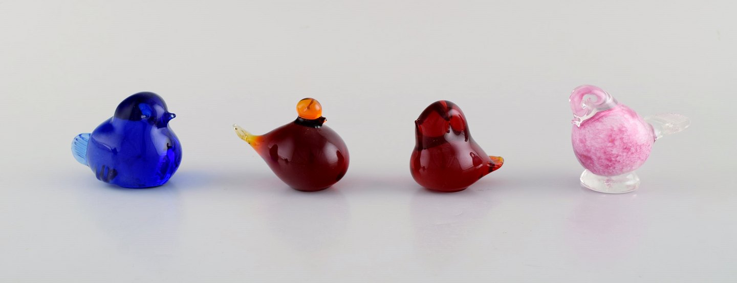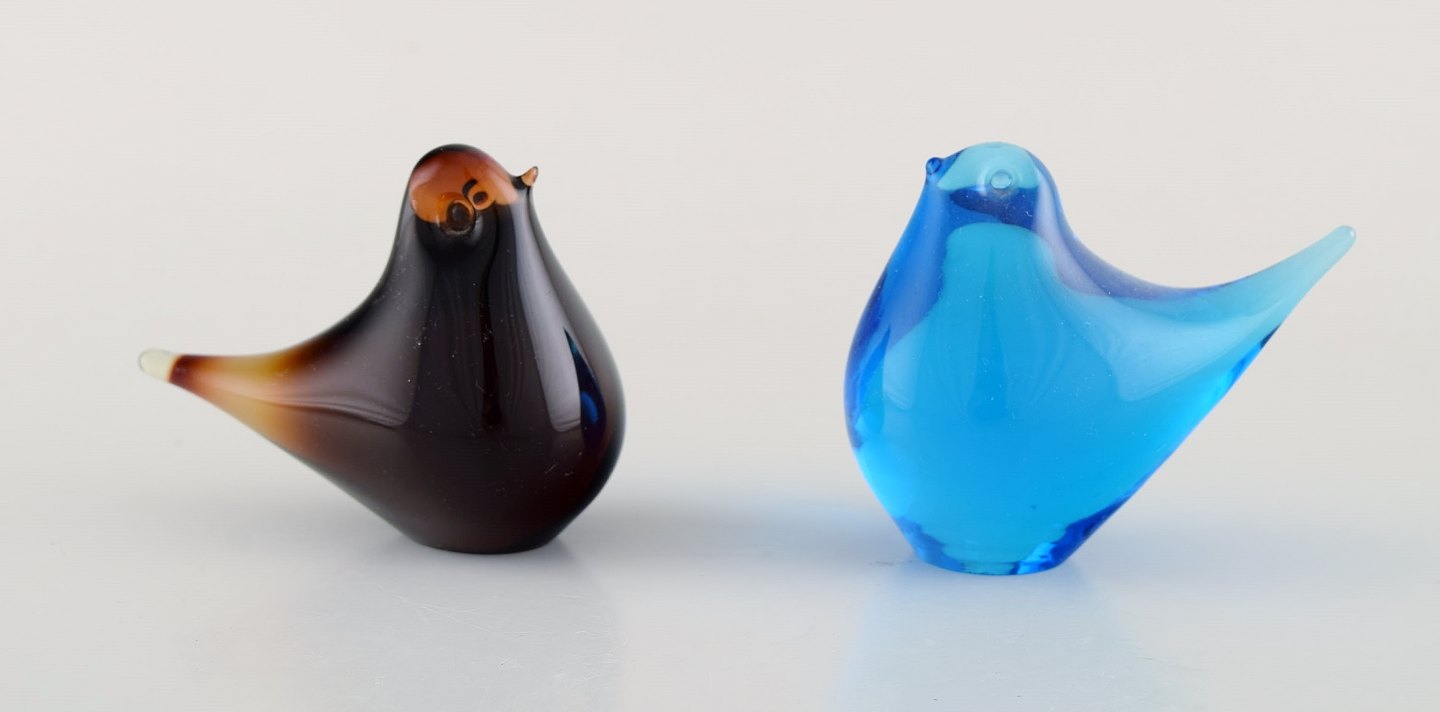 Svenske m.fl. glaskunstnere, heriblandt Lindshammar. Ni figurer af fugle i kunstglas. 1980'erne.