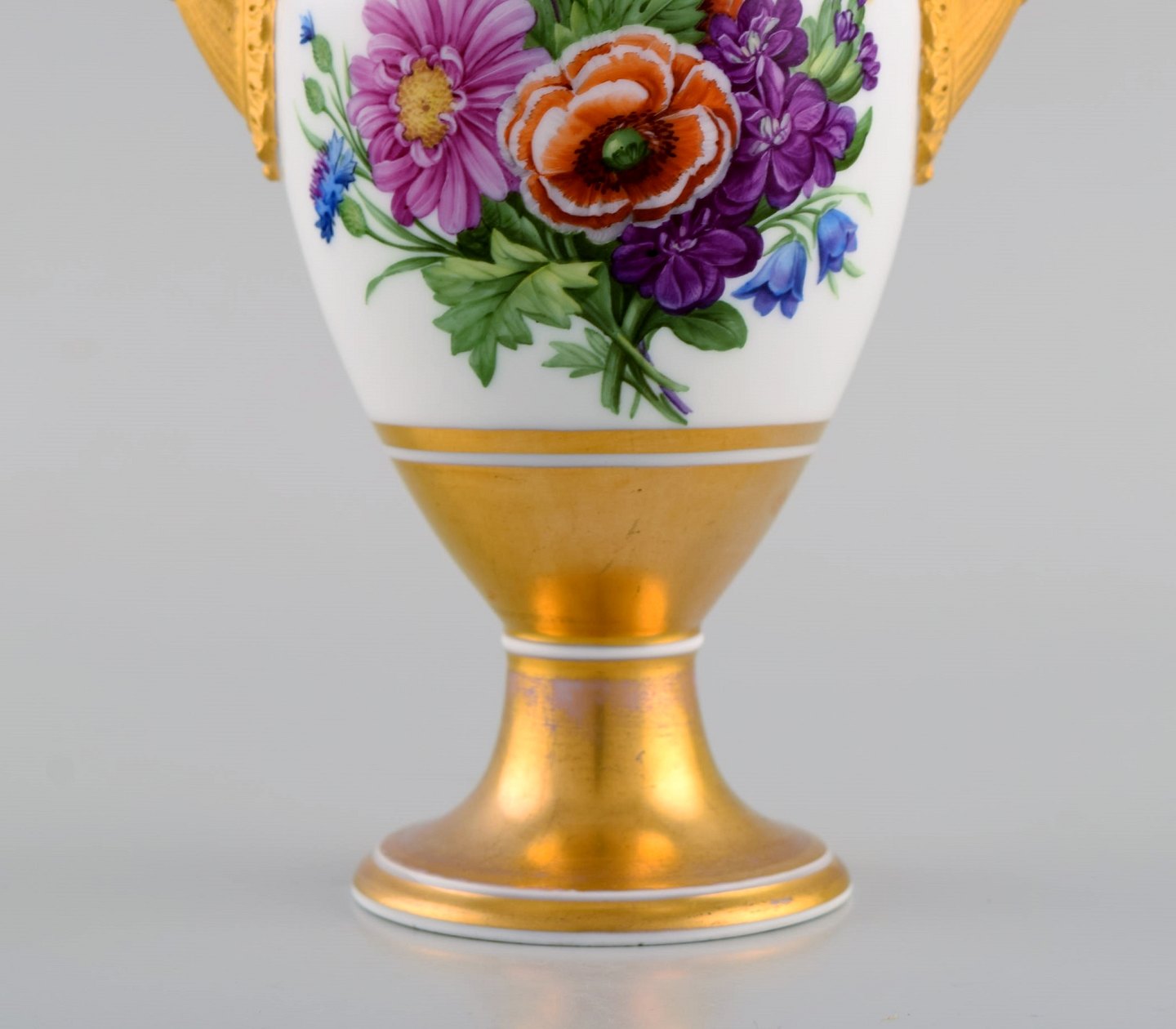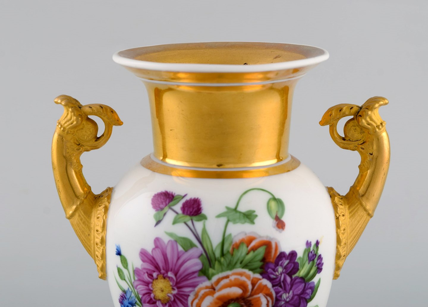 KPM, Berlin. Antik empire vase med blomster- og gulddekoration. 1800-tallet. Måler: 17,5 x 12 cm. I flot stand. Stemplet.