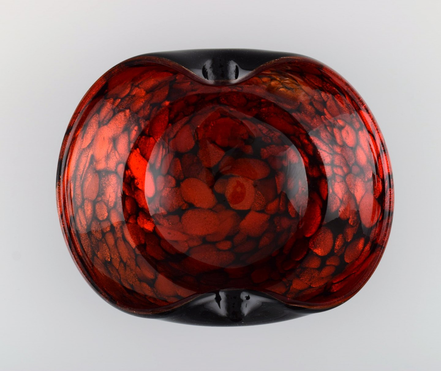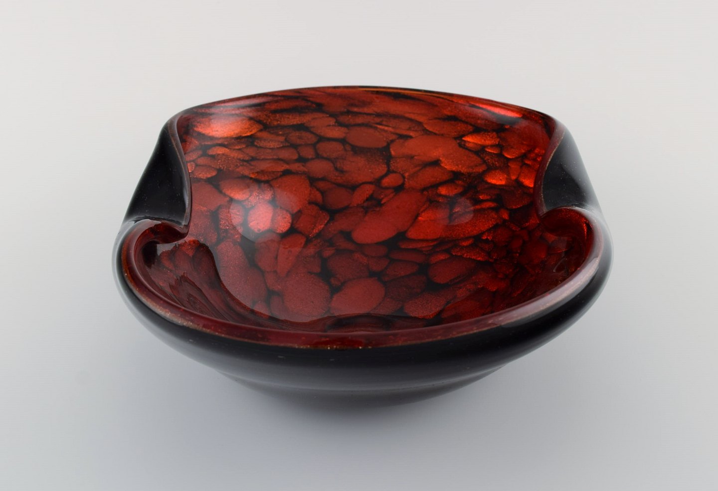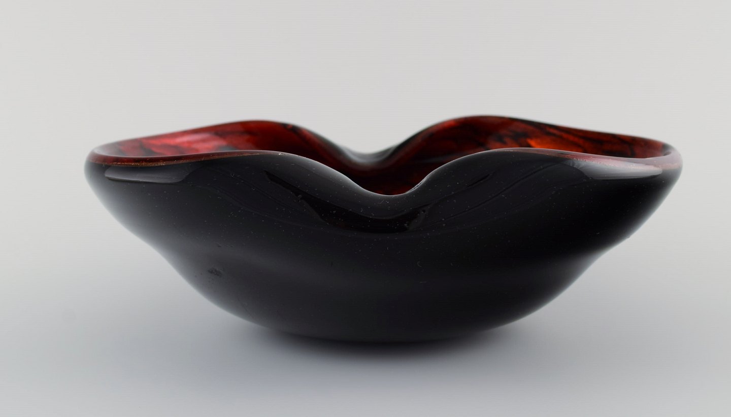 Murano skål i sort og rødt mundblæst kunstglas. Italiensk design, 1960'erne. Måler: 22 x 7,5 cm. I perfekt stand.
