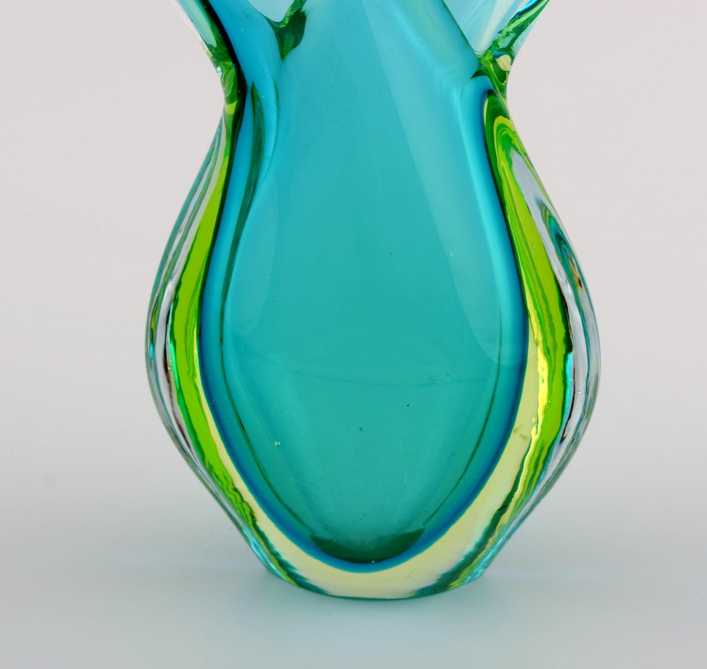 Murano vase i turkis mundblæst kunstglas. Italiensk design, 1960'erne. Måler: 16 x15 cm. I perfekt stand.