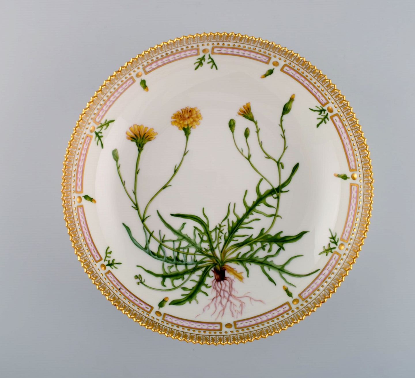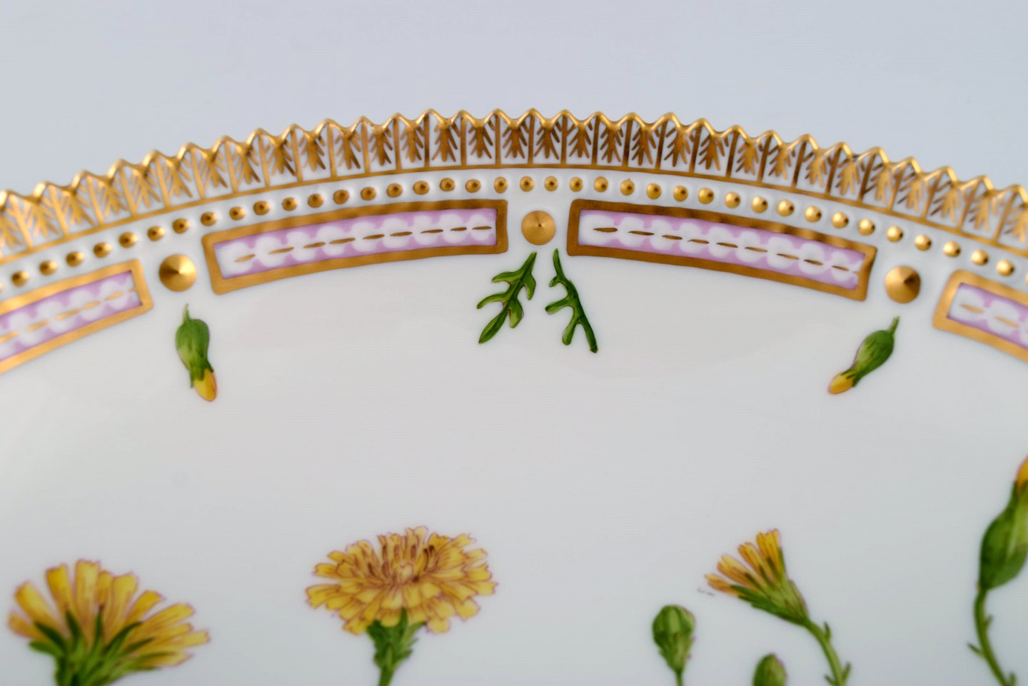 Stor Royal Copenhagen Flora Danica skål af porcelæn, dekoreret i farver og guld med blomster. Modelnummer 20/3505.