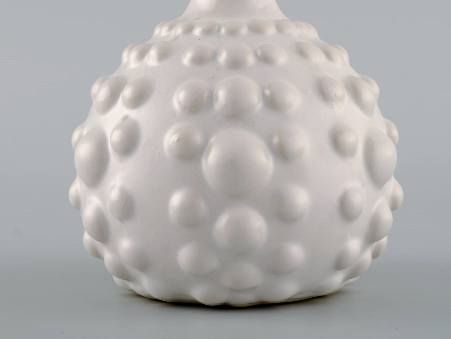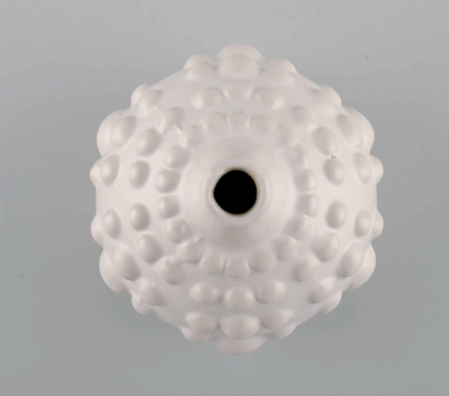 Europæisk studio keramiker. Unika vase i hvidglaseret keramik. 1980'erne. Måler: 9 x 9 cm. I flot stand.