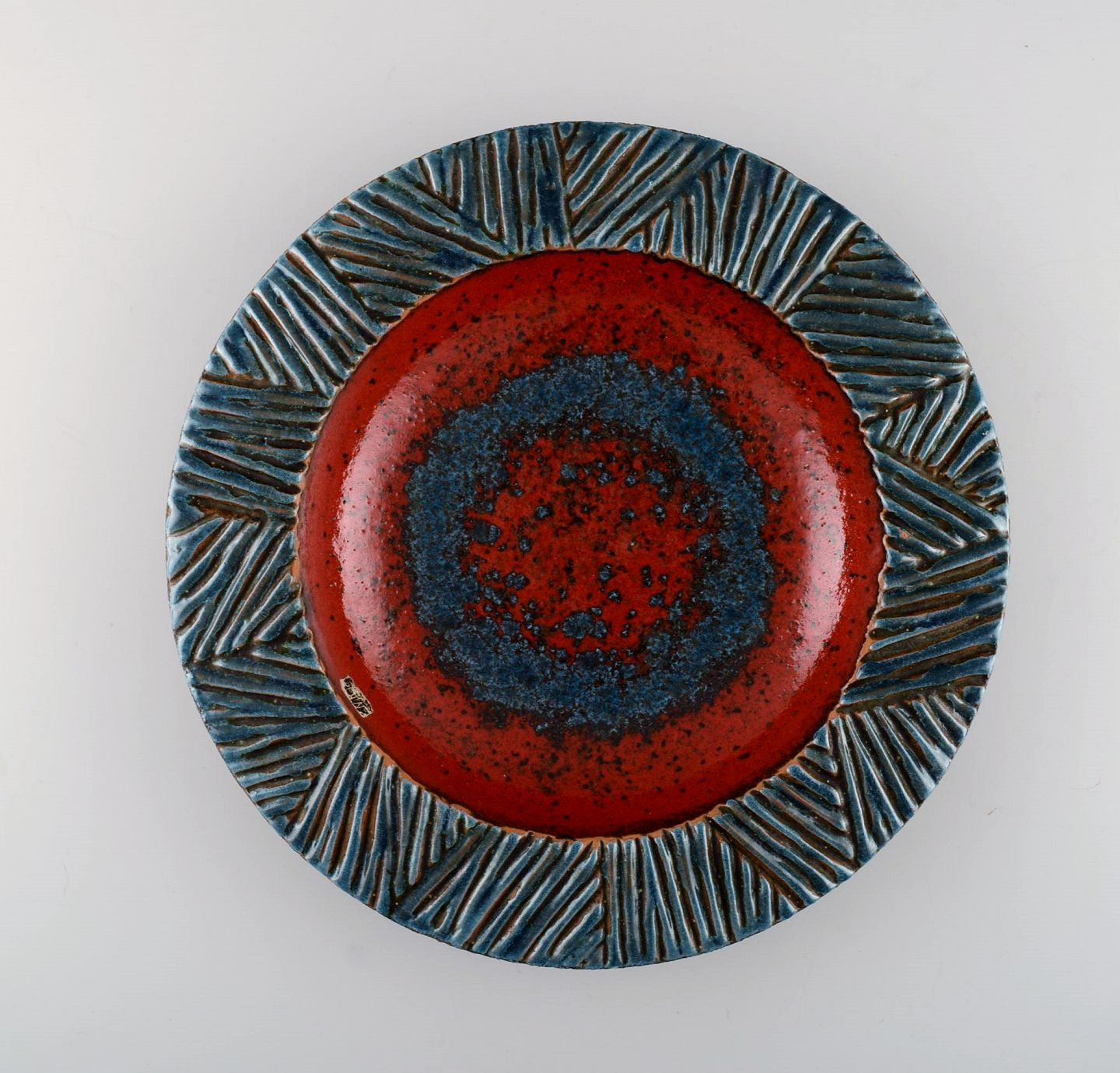 Nittsjö, Sverige. Stort rundt fad i glaseret stentøj. 1960´erne. Stemplet. Måler 27 x 4,5 cm. I flot stand.