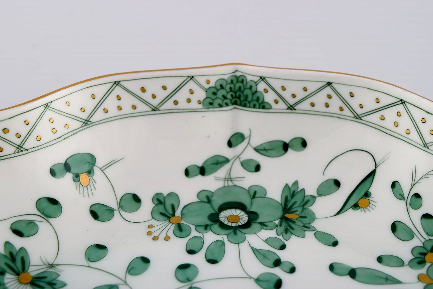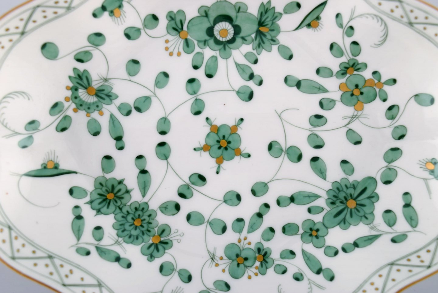 Meissen Green Indian skål i håndmalet porcelæn med grønne blomstermotiver. 1900-tallet. Måler: 18,5 x 15 x 3,5 cm. 1. Sortering. I flot stand. Stemplet.