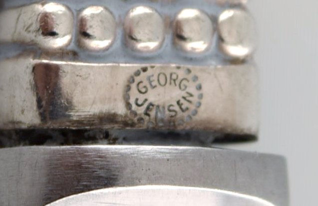 Georg Jensen Konge smørkniv i sterlingsølv og rustfrit stål. Længde: 15,7 cm. I flot stand. Stemplet.