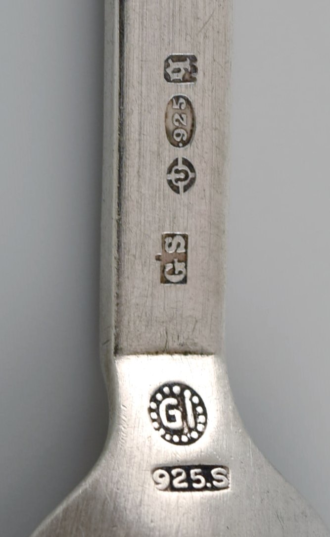 Tre Georg Jensen Pyramide kaffeskeer i sterlingsølv. Længde: 10,5 cm. I flot stand. Stemplet.