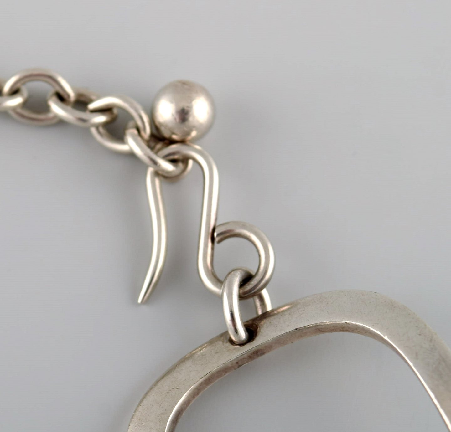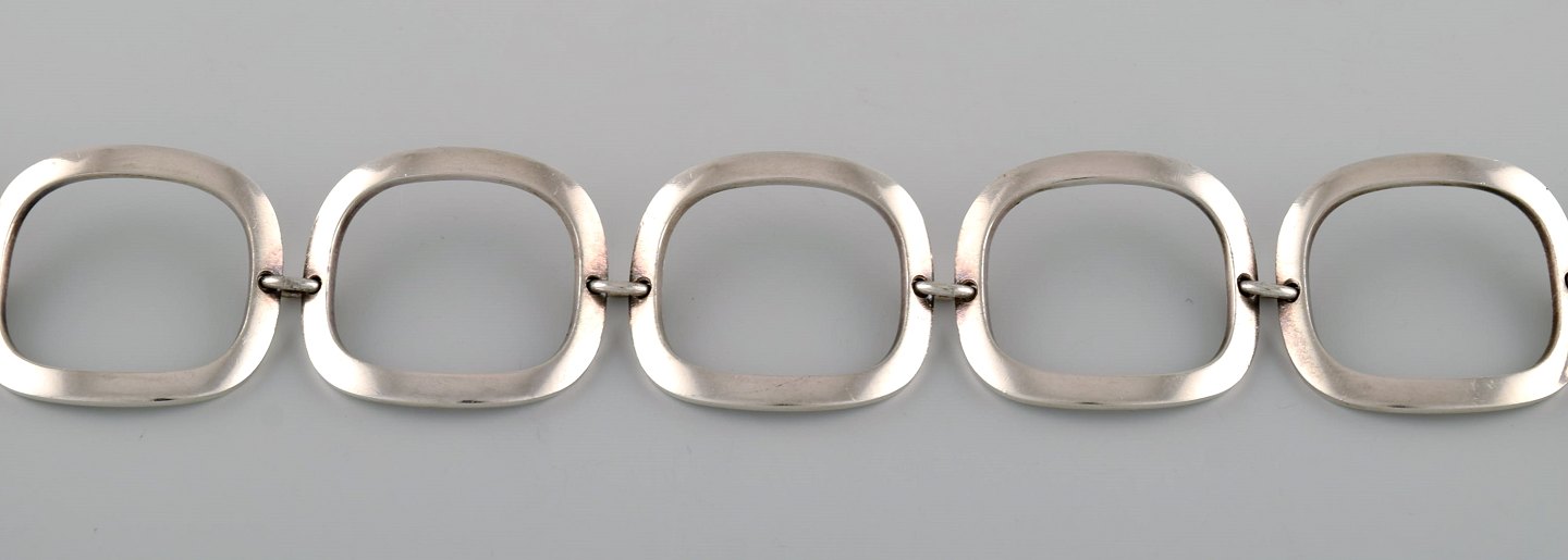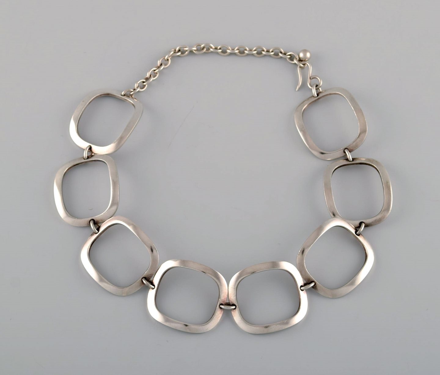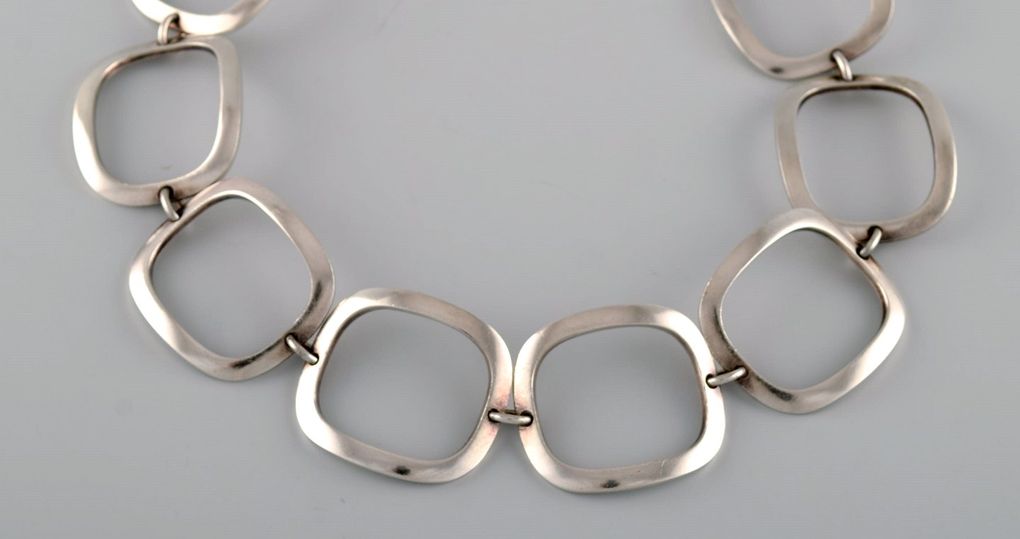 Ibe Dahlquist (1924-1996) for Georg Jensen. Modernistisk halskæde i sterlingsølv. 1960'erne. Fuld længde: 41 cm. Bredde: 3 cm. I flot stand. Stemplet.