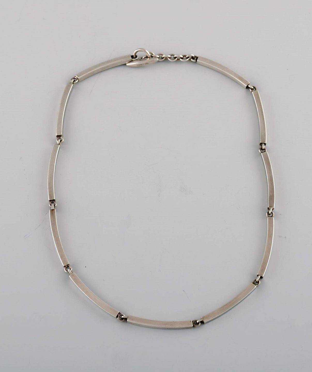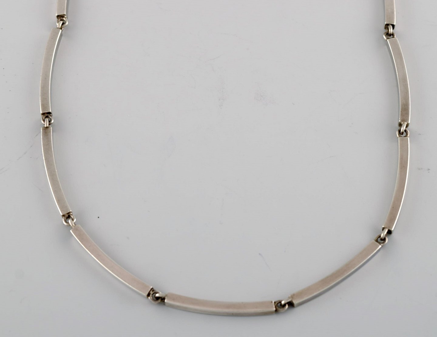 Hermann Siersbøl - Kastrup. Modernistisk halskæde i sterlingsølv. Midt 1900-tallet. Fuld længde: 39 cm. Bredde: 3 mm. I flot stand. Stemplet.