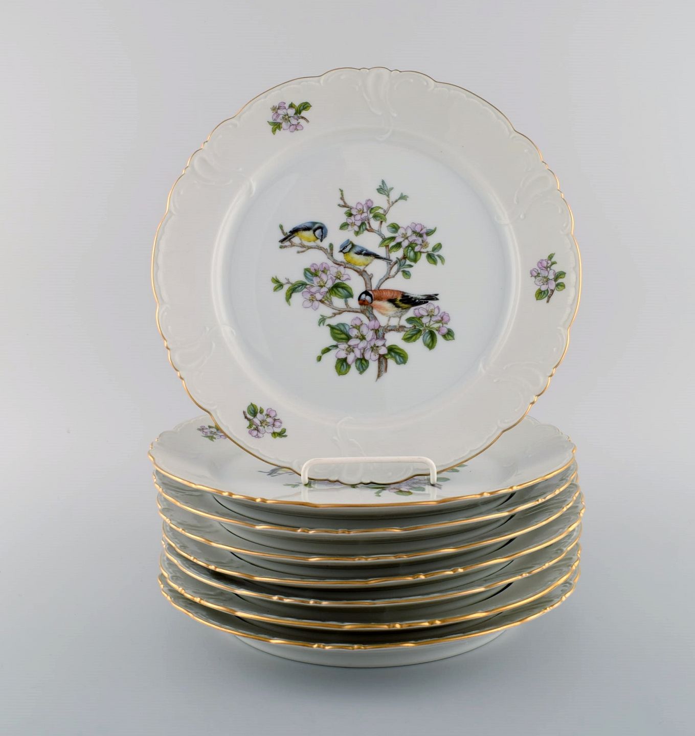 8 Royal Copenhagen "Forår" middagstallerkener i porcelæn med motiver af fugle og bladværk. 1980'erne. Modelnummer: 1533/2516. Diameter: 25 cm. I flot stand. Stemplet. 1. Sortering.