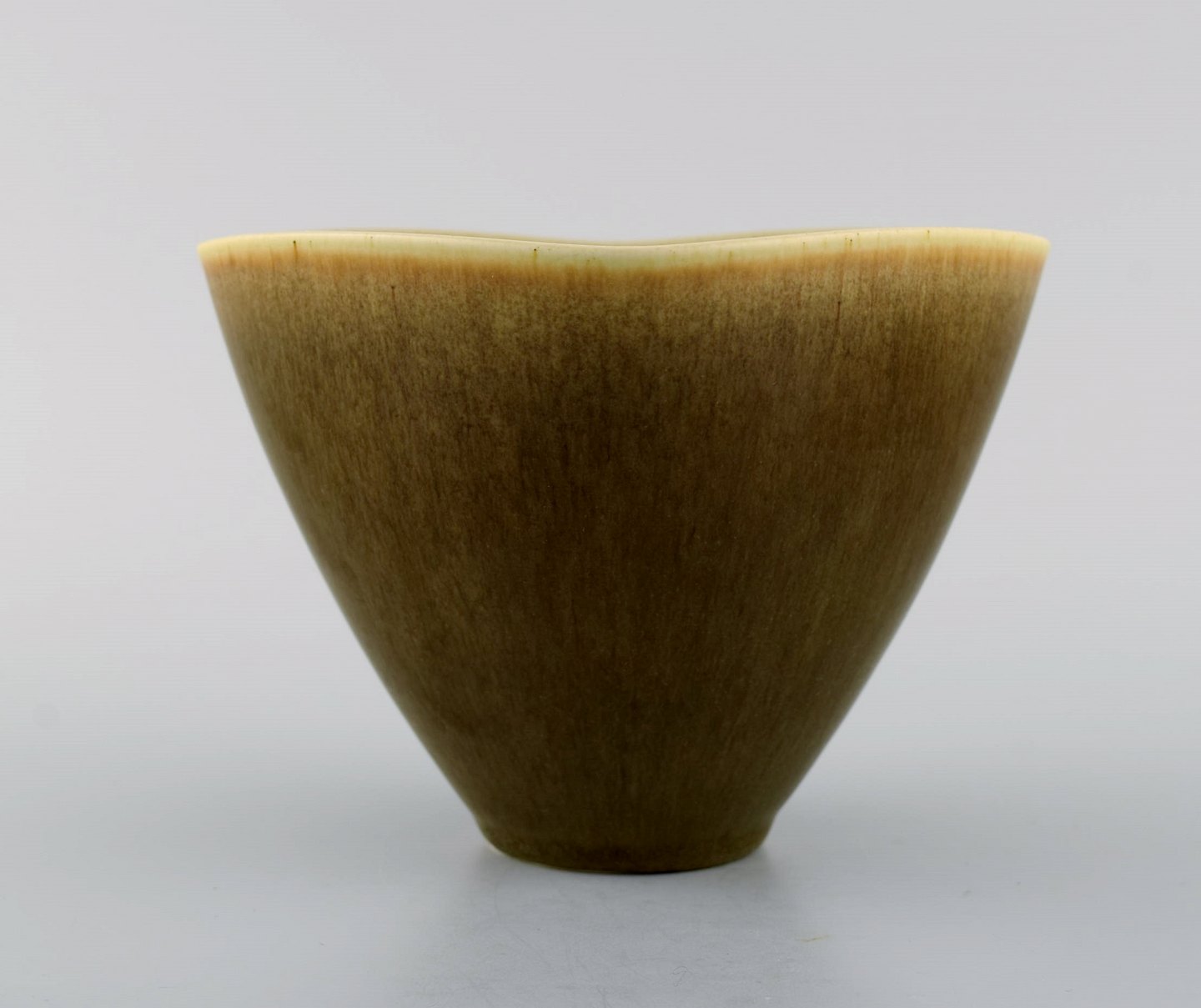 Per Linnemann-Schmidt (1912-1999) for Palshus. Vase i glaseret keramik. Smuk harepels glasur. 1960/70'erne. Måler: 14,3 x 10,5 cm. I flot stand. Signeret.