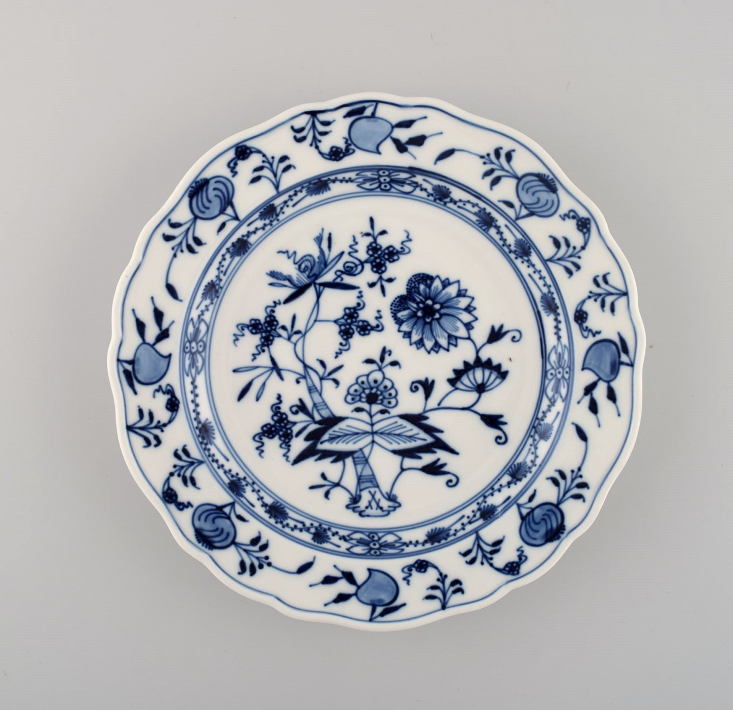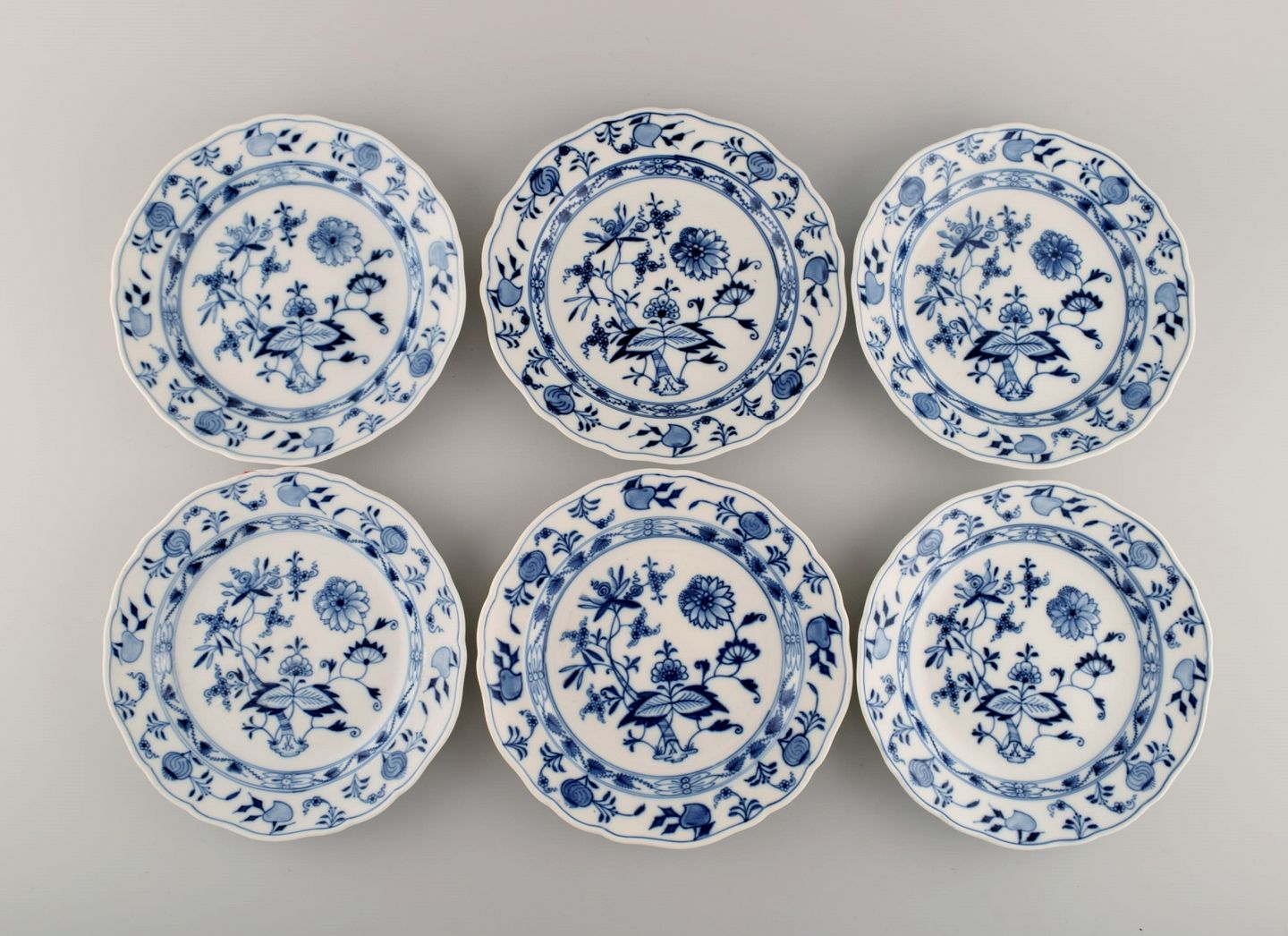 Seks antikke Meissen "Løgmønstret" frokosttallerkener i håndmalet porcelæn. Tidligt 1900-tallet.