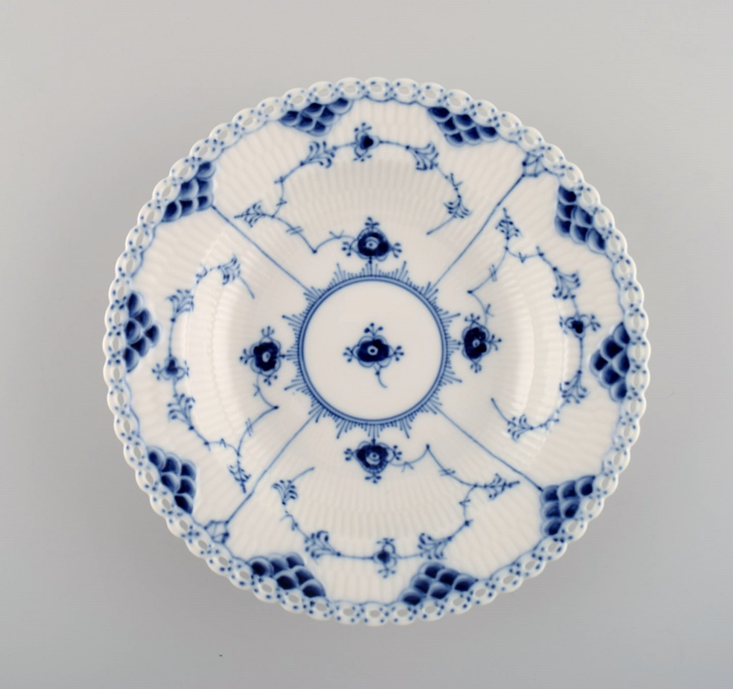 Ni Royal Copenhagen Musselmalet helblonde dybe tallerkener. Modelnummer 1/1070. Måler: 20 x 4 cm. 2. sortering. I flot stand. Stemplet.
