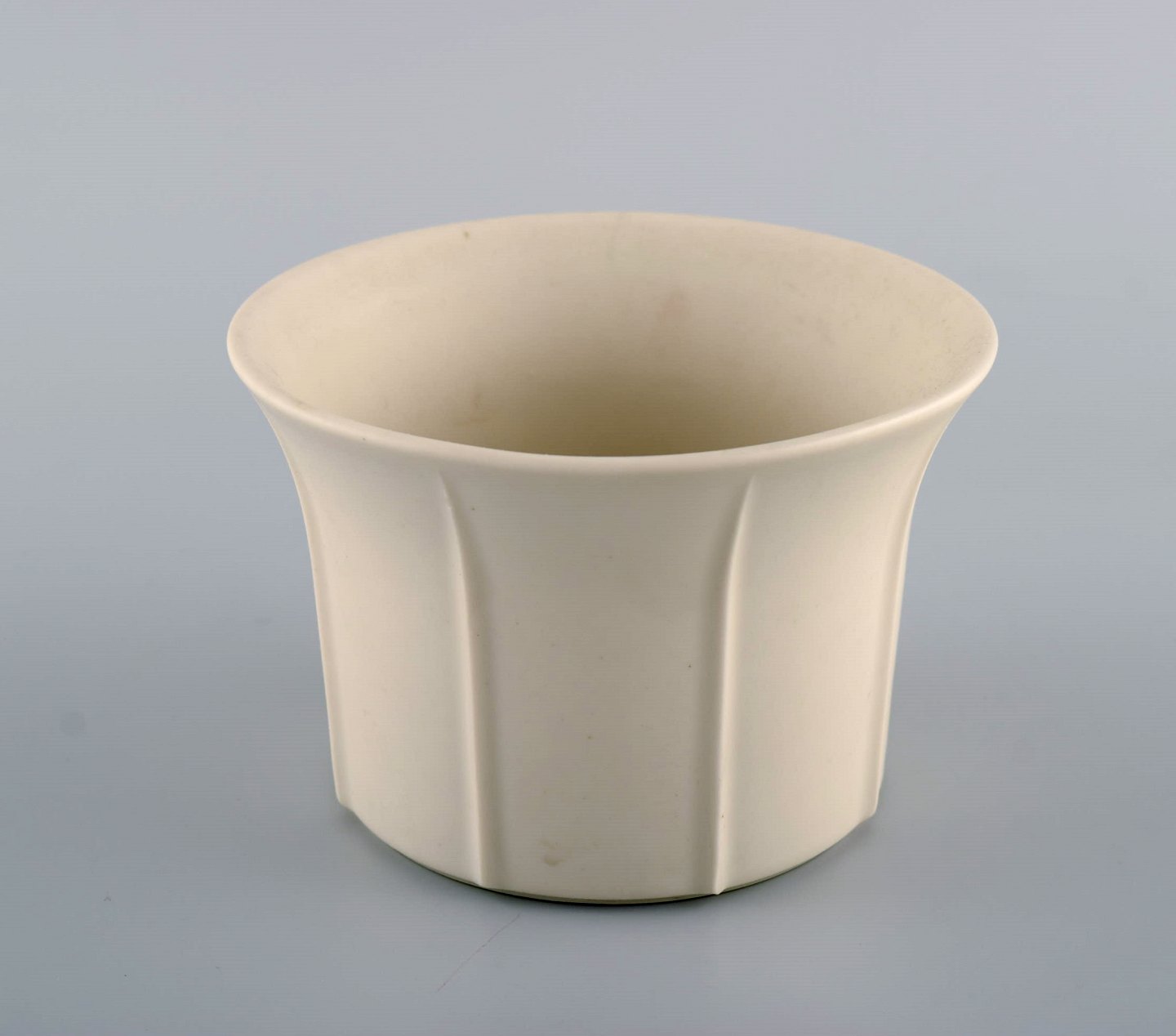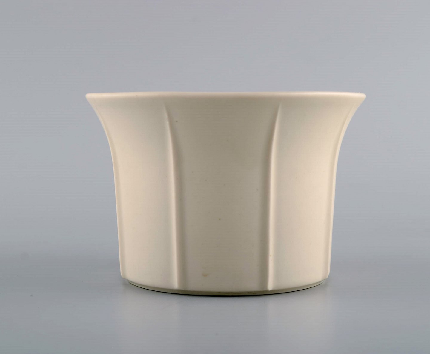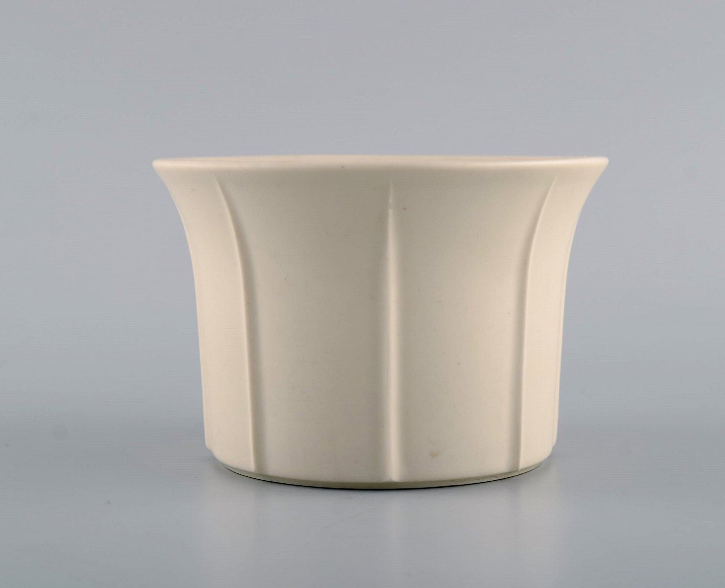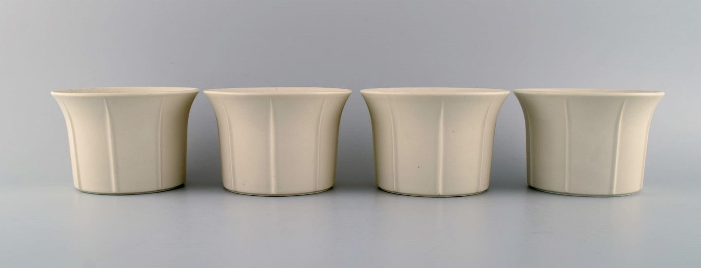 Arabia, Finland. Fire urtepotteskjulere i stentøj. Rillet design, 1970'erne. Måler: 12 x 8 cm. I flot stand. Stemplet.