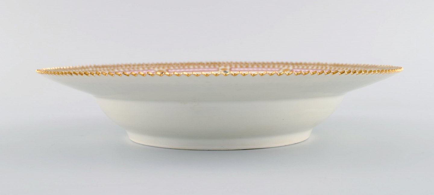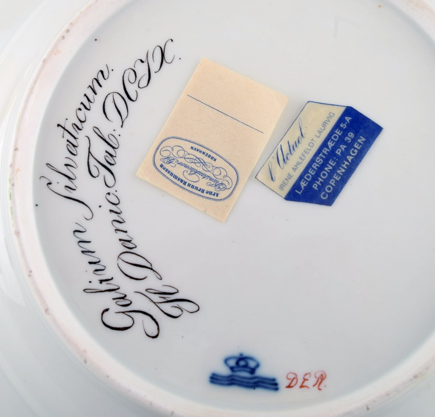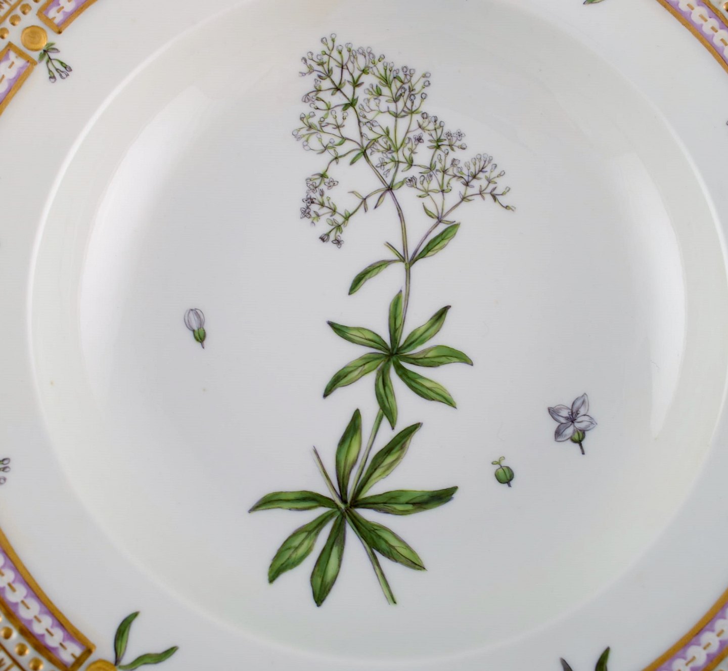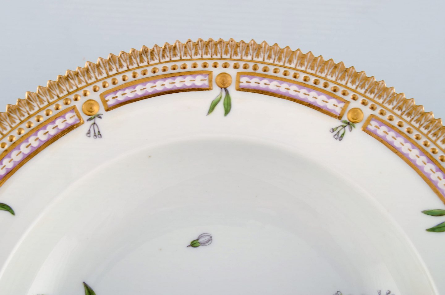 Royal Copenhagen flora danica dyb tallerken i porcelæn med håndmalede blomster og gulddekoration. Tidligt 1900-tallet. Måler: 24,5 x 5,2 cm. I flot stand. 1. sortering. Stemplet. Proveniens: