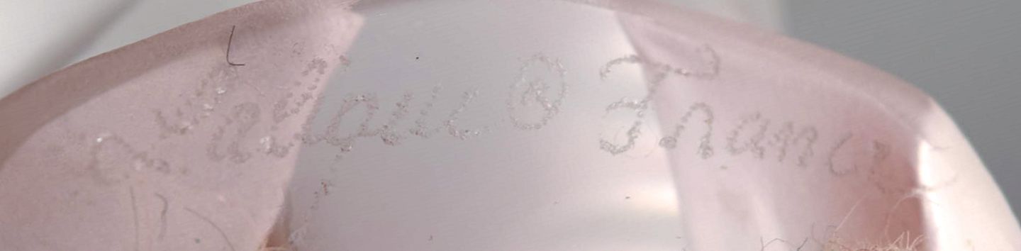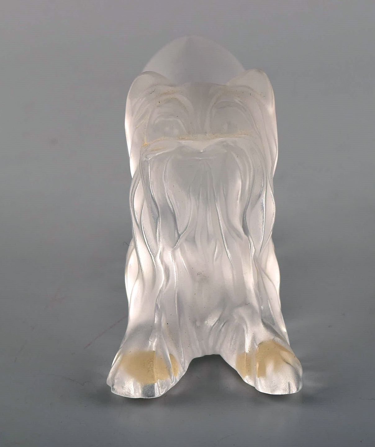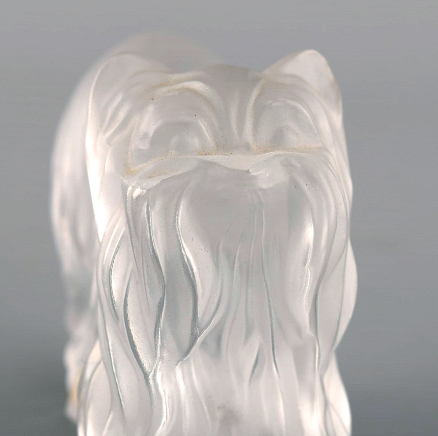 Lalique hund i matteret kunstglas. 1980'erne. Måler: 11 x 7,5 cm. I flot stand. Indridset signatur.