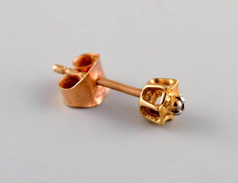 Svensk guldsmed. Et par klassiske ørestikker i 18 karat guld prydet med halvædelsten. Midt 1900-tallet. Måler: 14 x 5 mm. I flot stand. Stemplet.