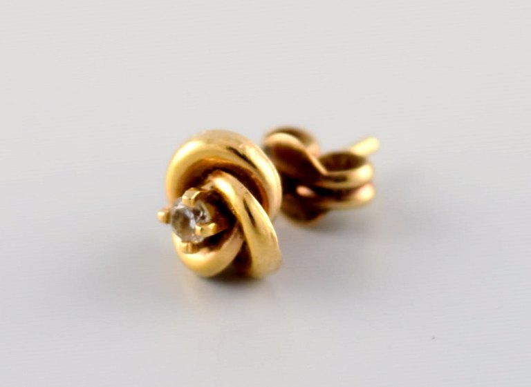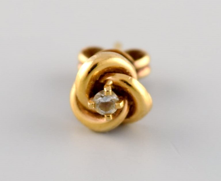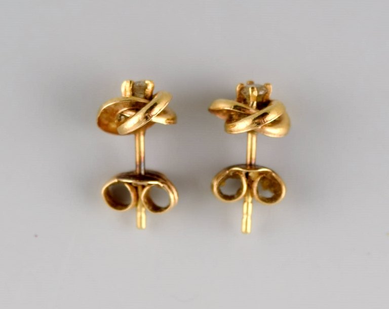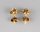 Svensk guldsmed. Et par klassiske ørestikker i 18 karat guld prydet med halvædelsten. Midt 1900-tallet. Måler: 12 x 7 mm. I flot stand. Stemplet.