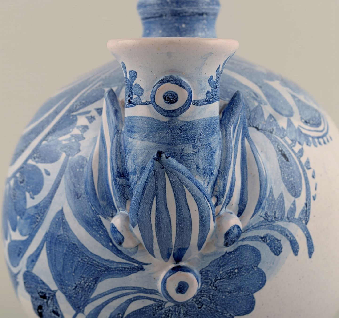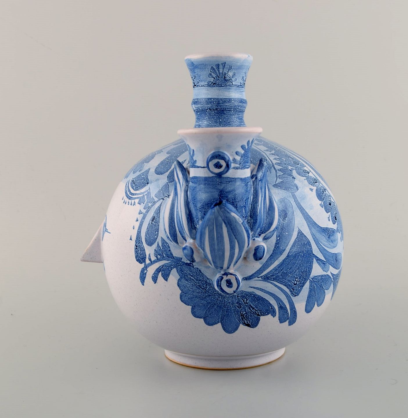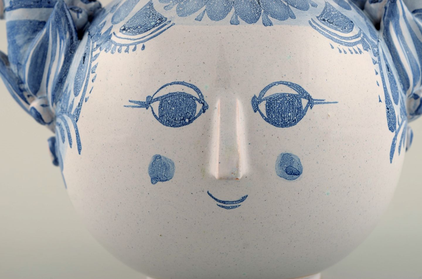 Bjørn Wiinblad (1918-2006), Danmark. Unika trearmet lysestage i glaseret keramik. Kvindeansigt, model OL4. Dateret 1980. Måler: 25 x 21,5 cm. I flot stand. Signeret og dateret.