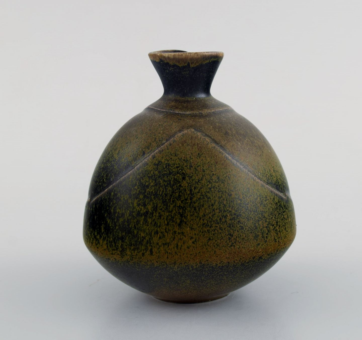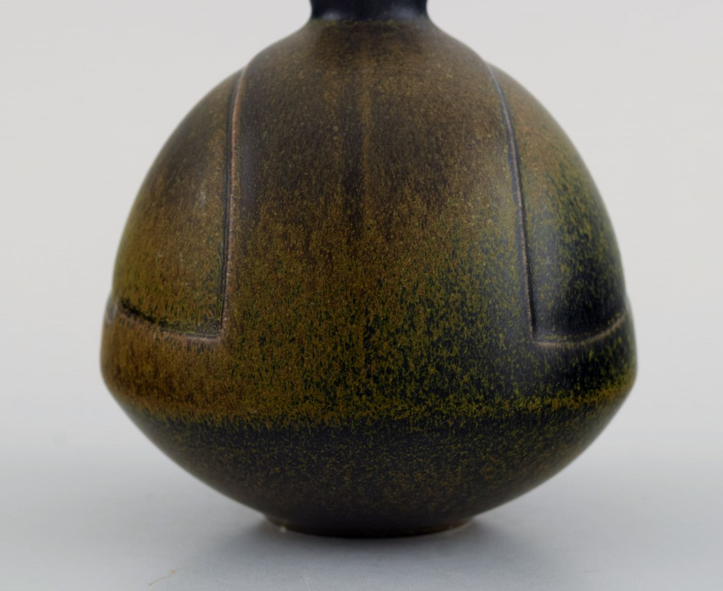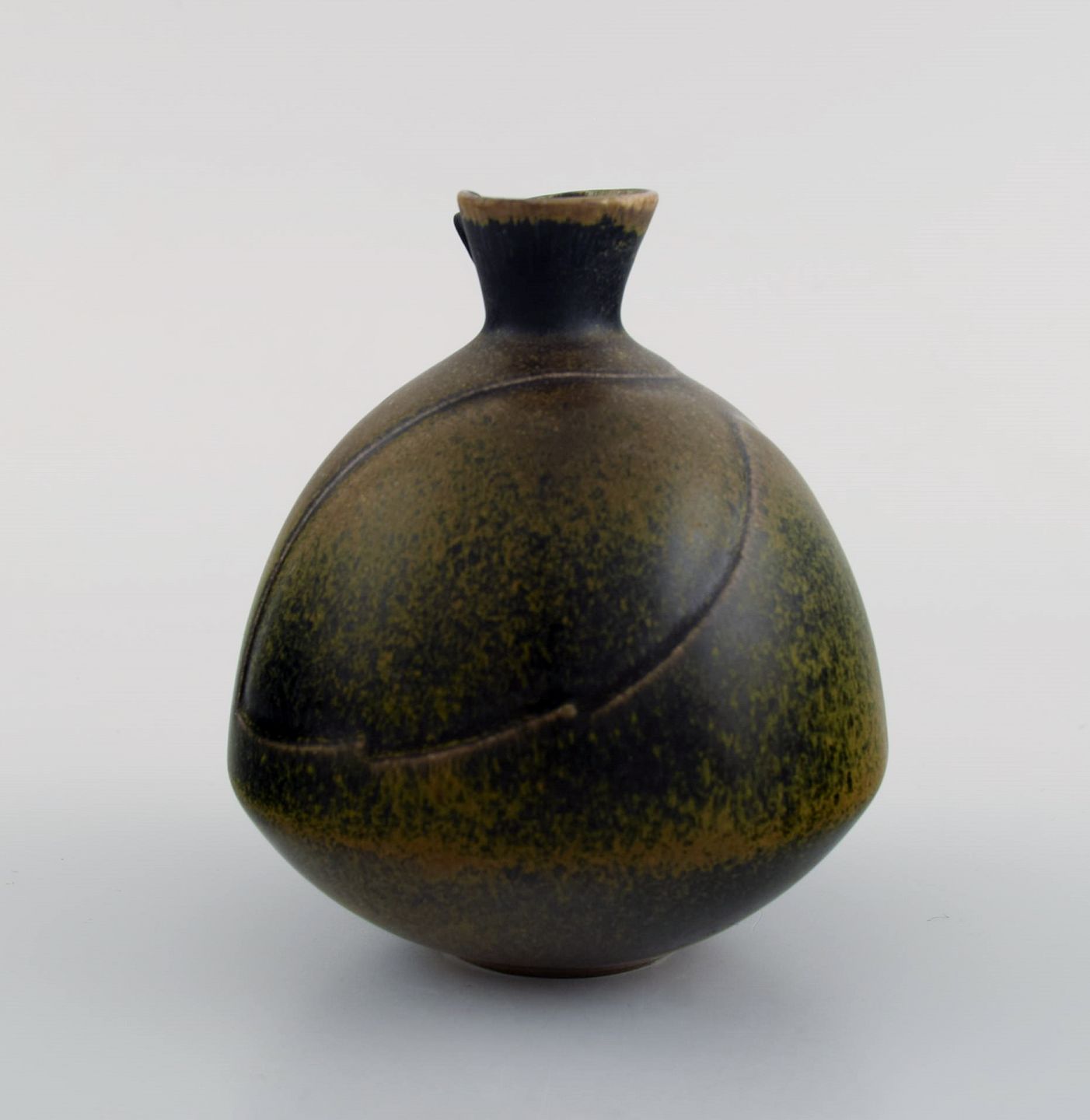Gabi Citron-Tengborg for Gustavsberg. Vase i glaseret stentøj dekoreret med flot glasur i grønne nuancer. Midt 1900-tallet. Måler: 11,5 x 10 cm. Stemplet. I flot stand.