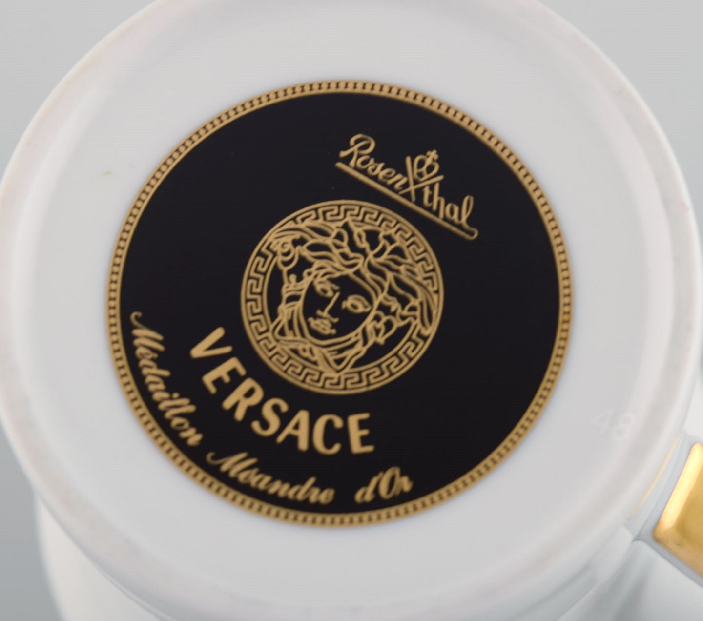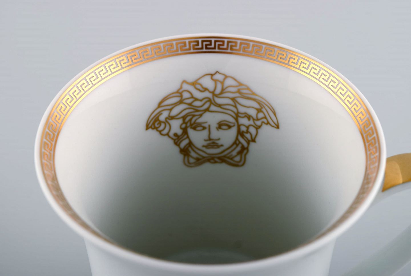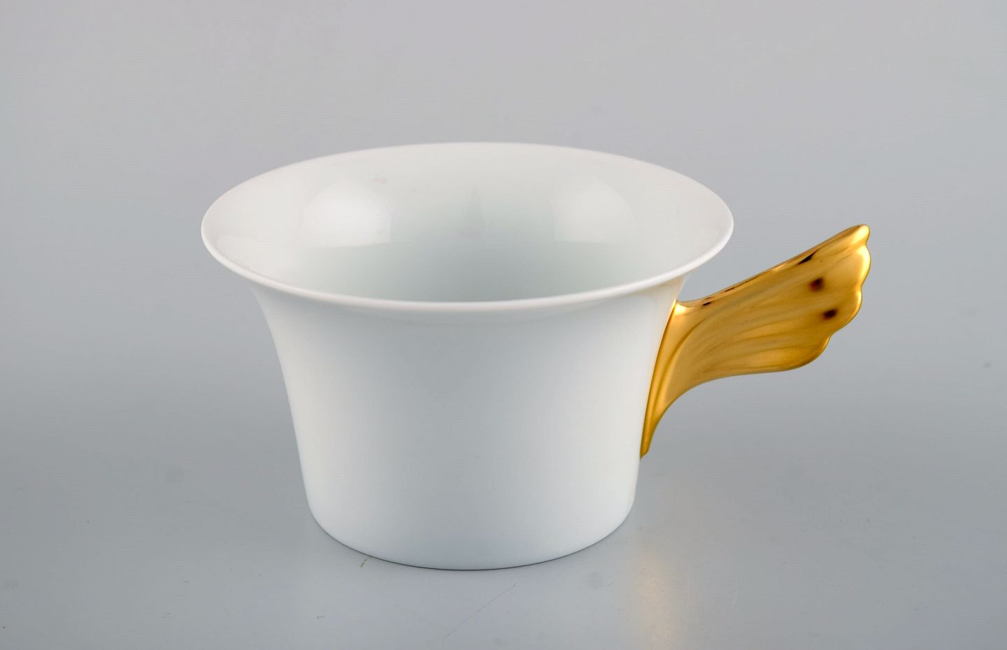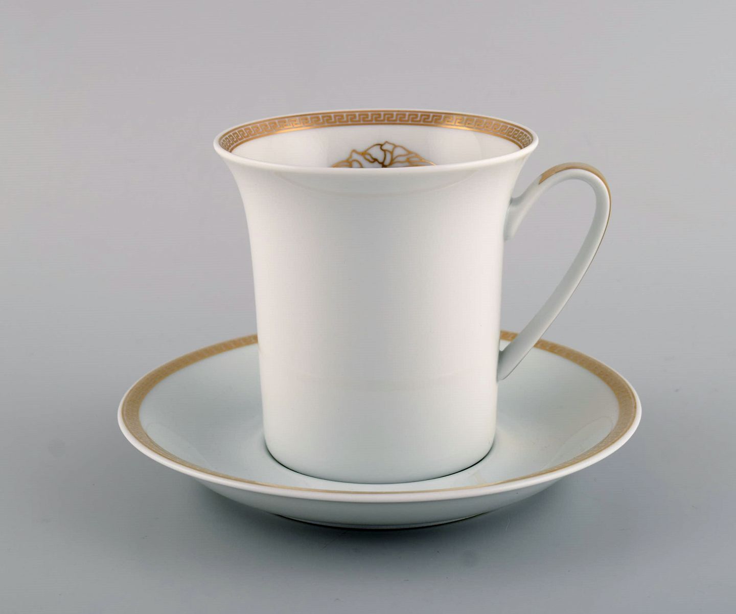 Gianni Versace for Rosenthal. To kopper i hvid porcelæn med gulddekoration. Sent 1900-tallet. Største kop måler: 9,5 x 9,5 cm. Underkop diameter: 16 cm. I perfekt stand. Stemplet.