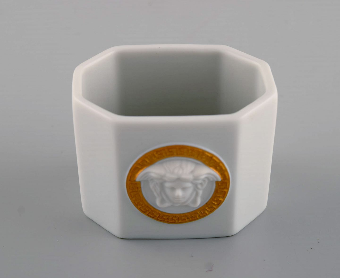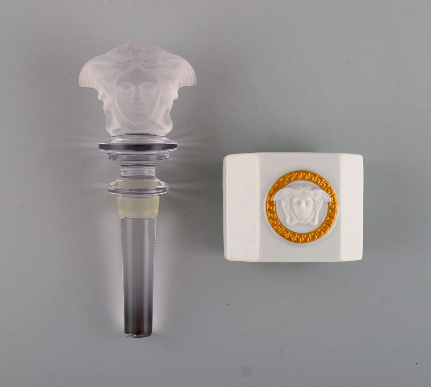 Gianni Versace for Rosenthal. Vinprop i kunstglas og servietring i porcelæn med gulddekoration. Sent 1900-tallet. I perfekt stand. Vinproppen måler: 13 x 5,5 cm. Servietringen måler: 6 x 4,5 Stemplet.