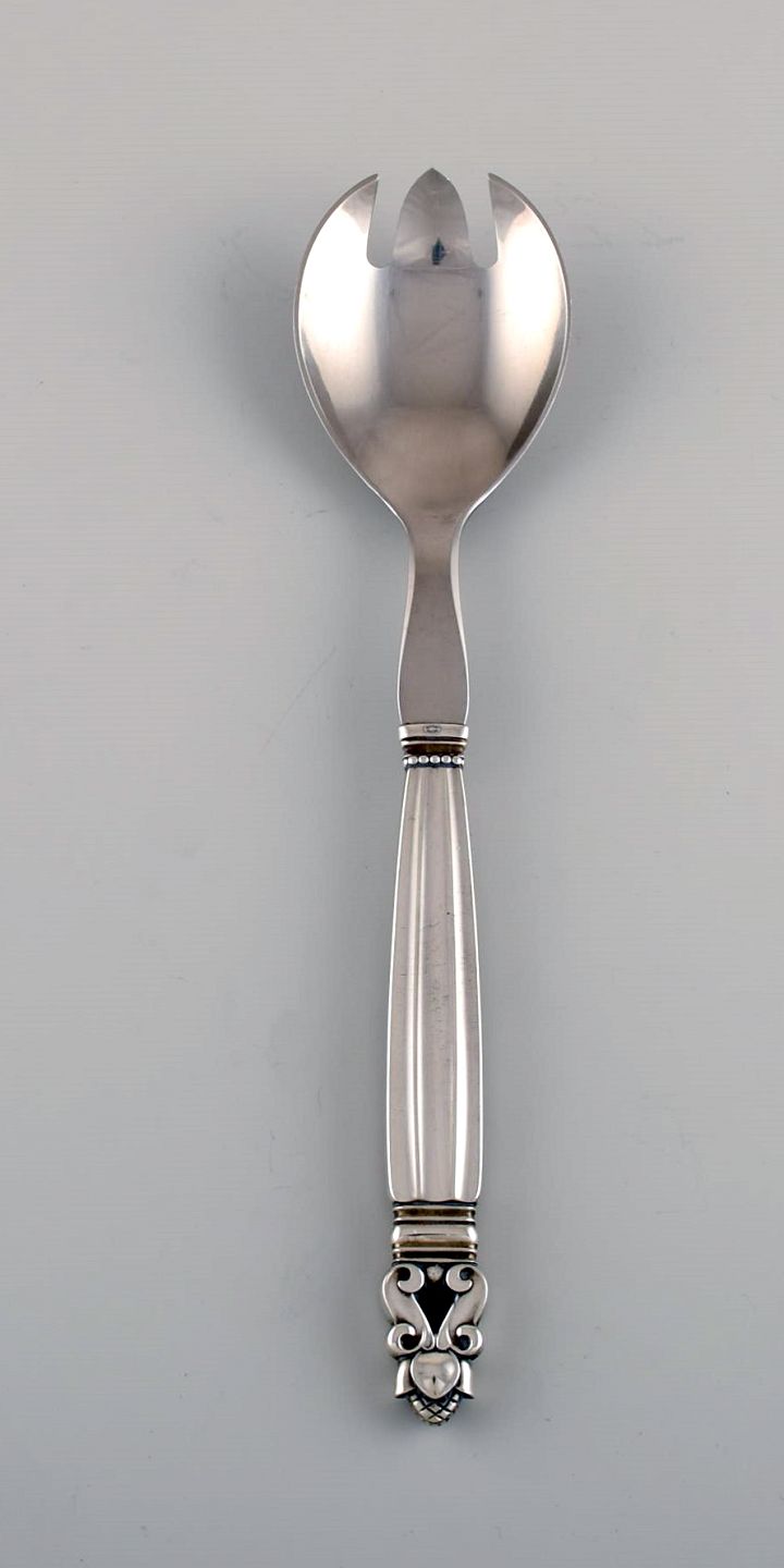 Georg Jensen Konge salatsæt i sterlingsølv og rustfrit stål.