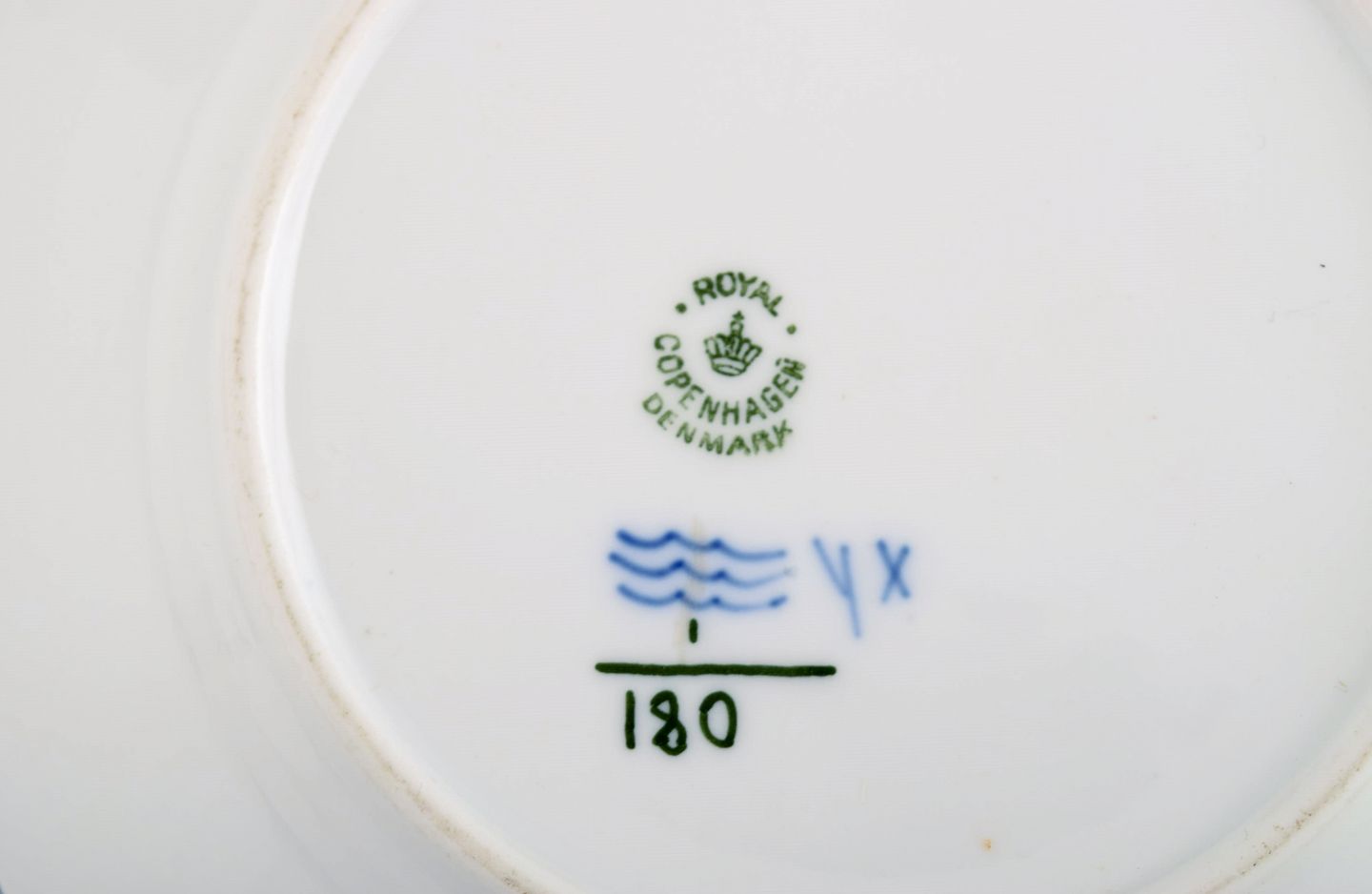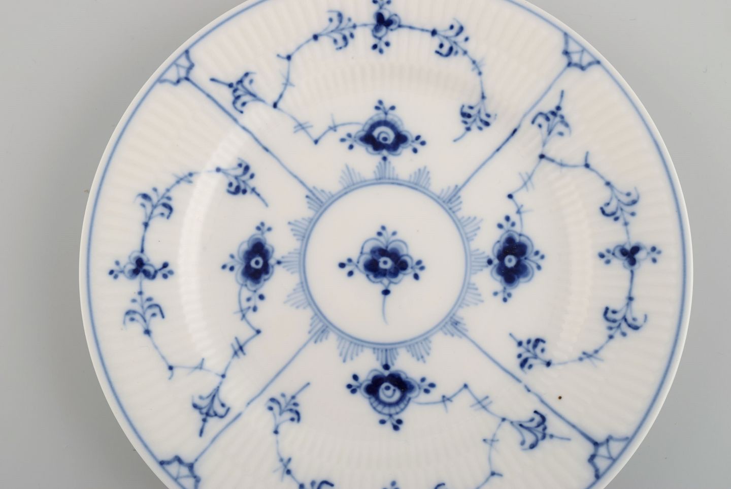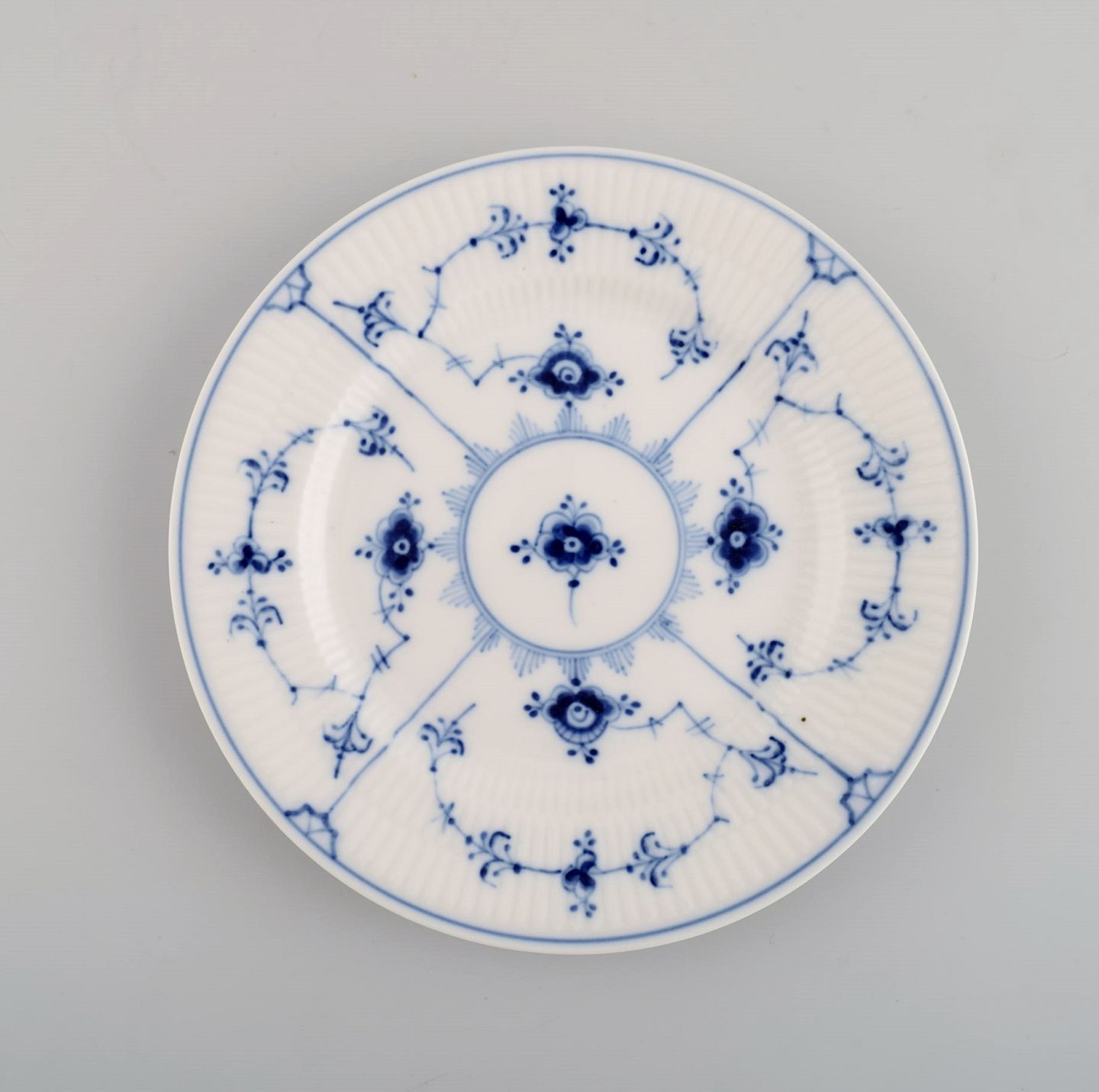 Tolv Royal Copenhagen Musselmalet riflet tallerkener. Modelnummer 1/180. Dateret 1949. Diameter: 17,2 cm. Stemplet. 2. sortering.