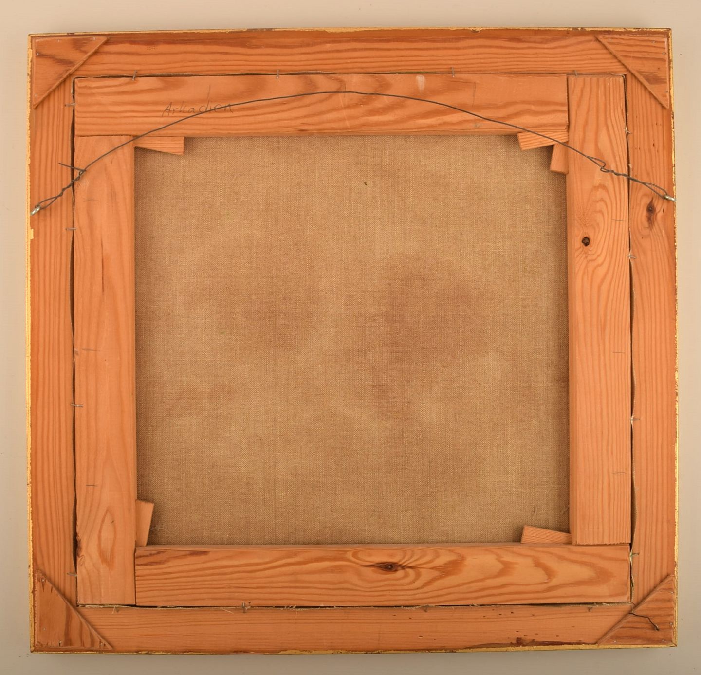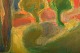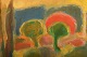 Montana Lorentz (1915-2008), Amerikansk-Svensk kunstner. Olie på lærred. Modernistisk landskab med træer. Dateret 1968. Lærredet måler: 42 x 40 cm. Rammen måler: 5 cm. I flot stand. Signeret og dateret.