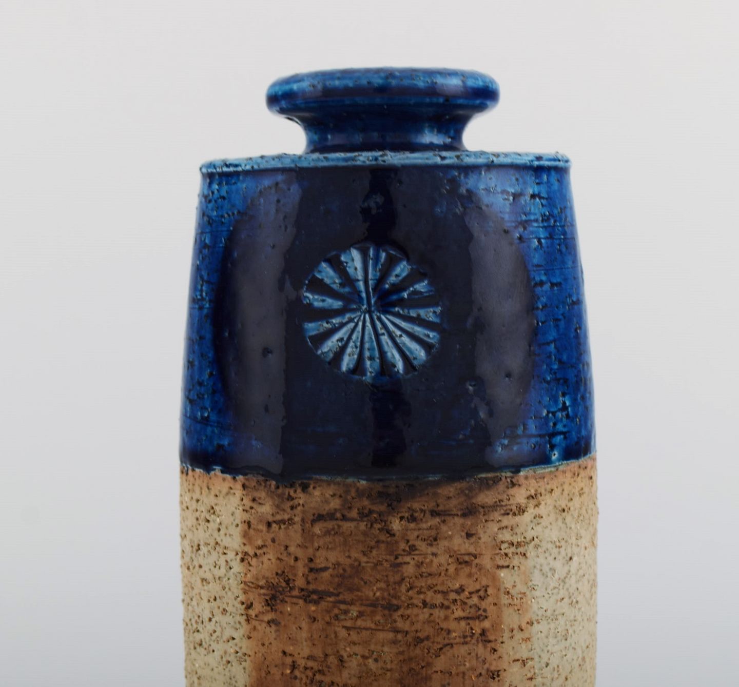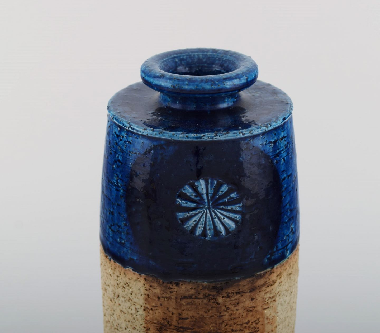 Inger Persson (f. 1936) for Rörstrand. Vase i delvist glaseret keramik. Svensk design, 1970'erne. Måler: 22,5 x 10 cm. I flot stand. Stemplet.
