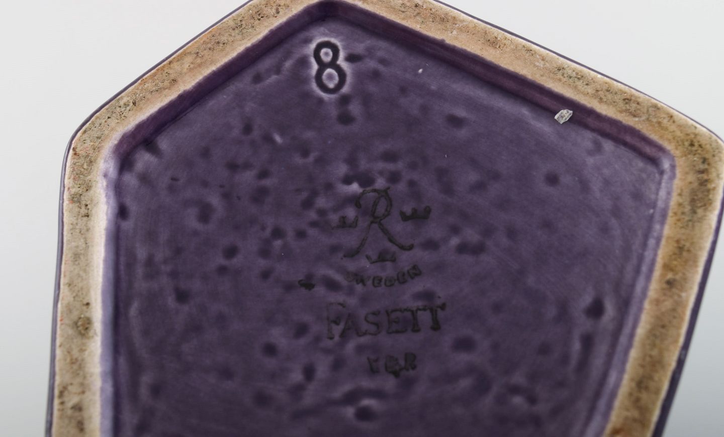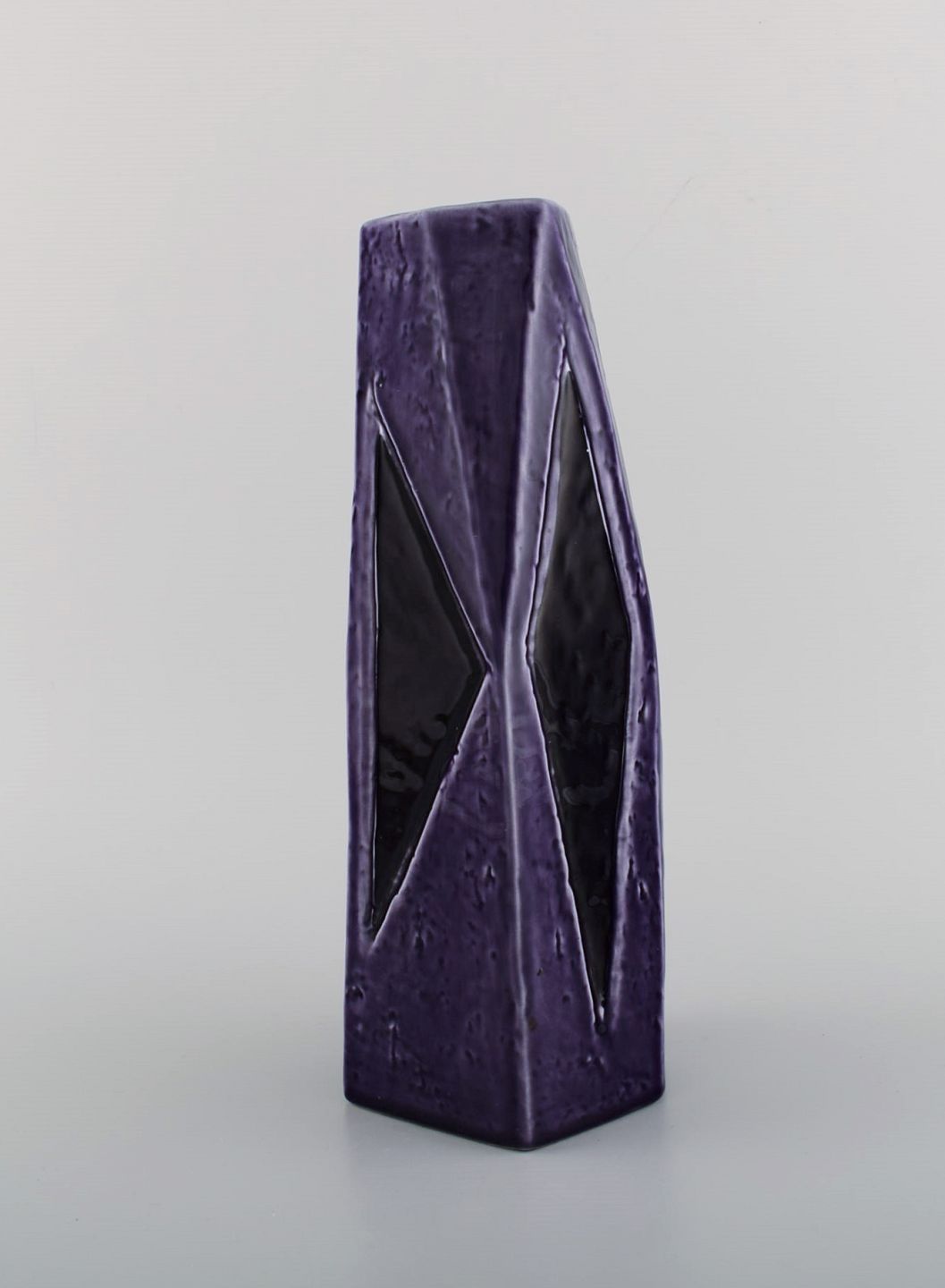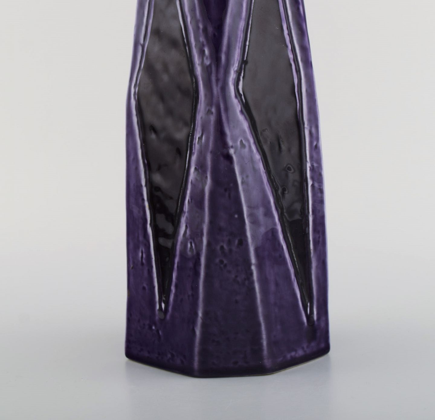 Vilhelm Bjerke Petersen (1909-1957) for Rörstrand. Fasett vase i glaseret keramik. Smuk glasur i lilla nuancer. Midt 1900-tallet. Måler: 27 x 11 cm. I flot stand. Stemplet.