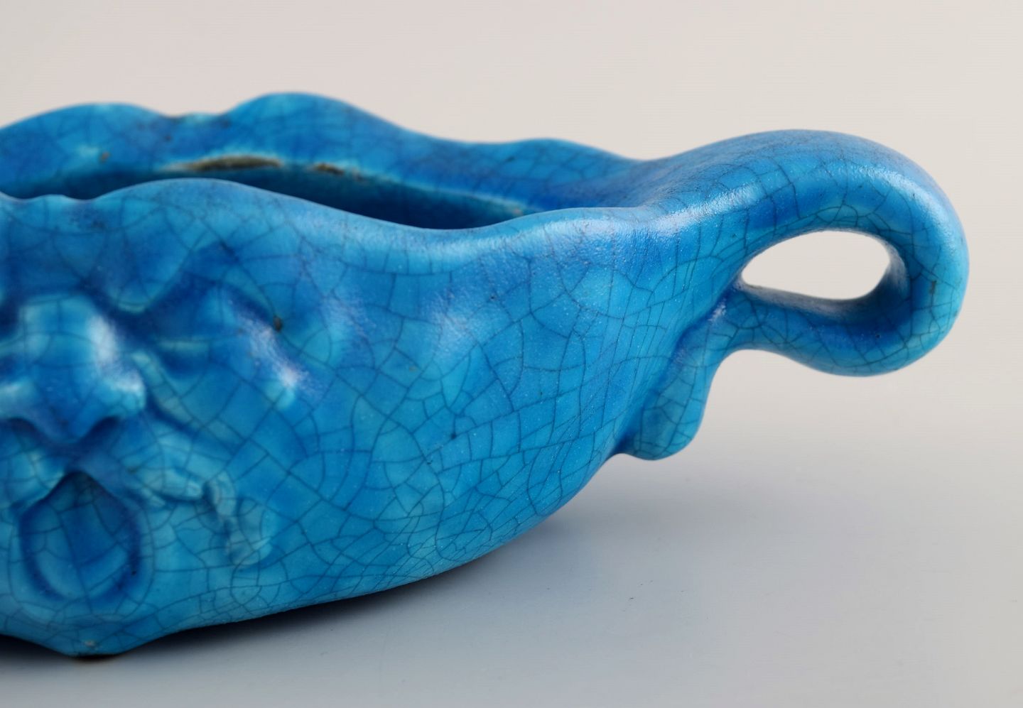 Edmond Lachenal (1855-1948), Frankrig. Unika art nouveau skål med hanke i glaseret keramik med motiv af grotesk. Smuk turkis glasur. Dateret 1910-1920. Måler: 28,5 x 7,5 cm. I flot stand. Utydeligt signeret.
