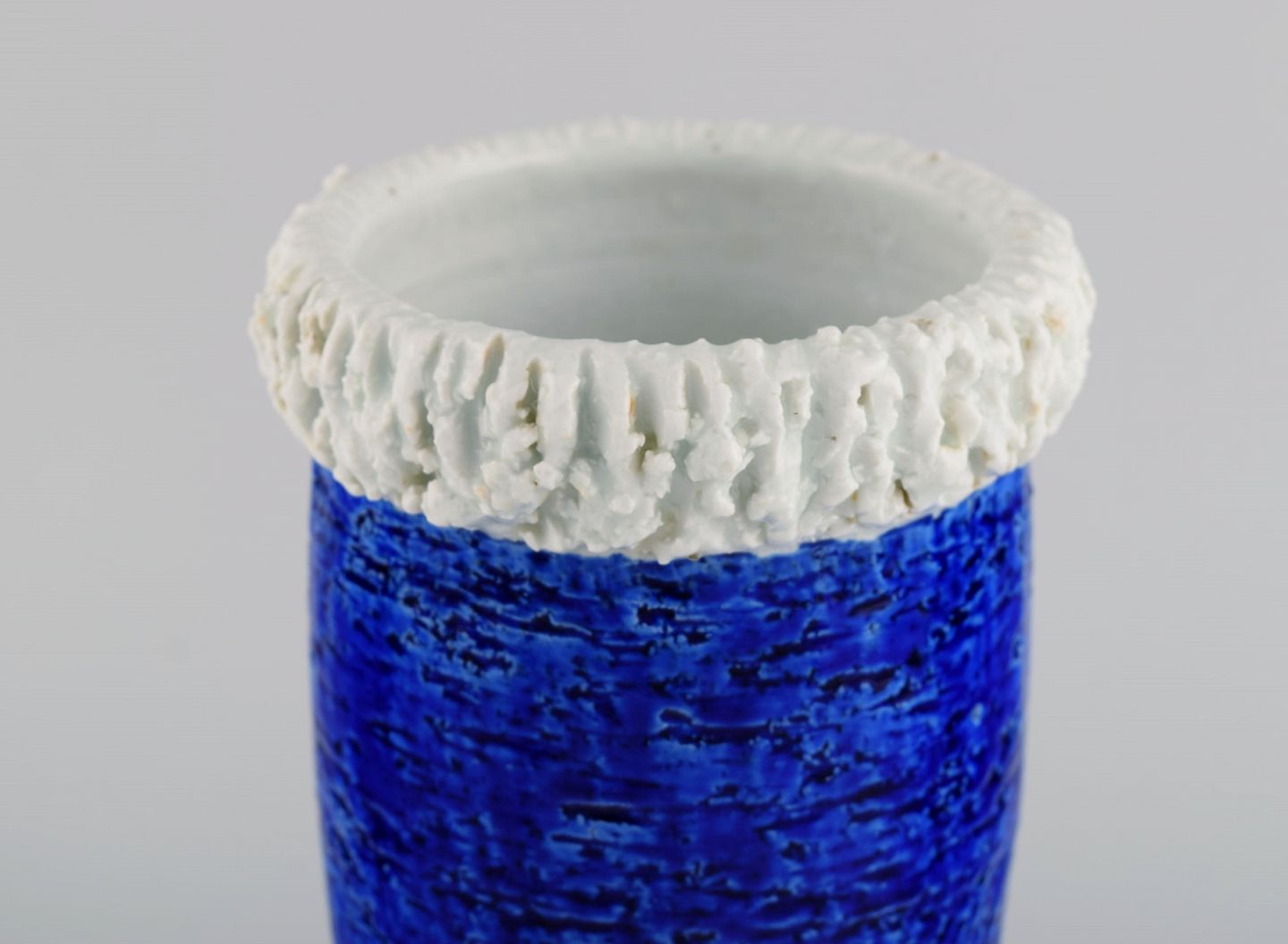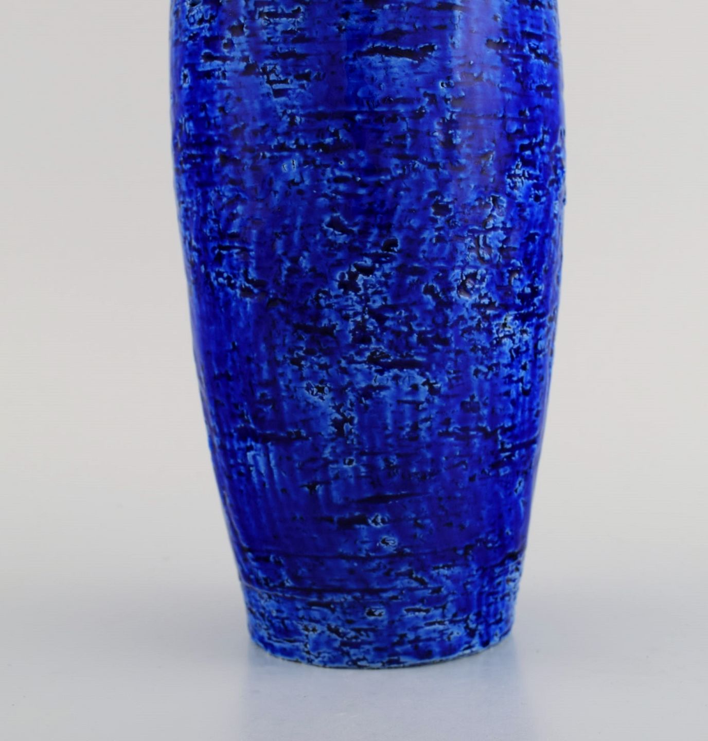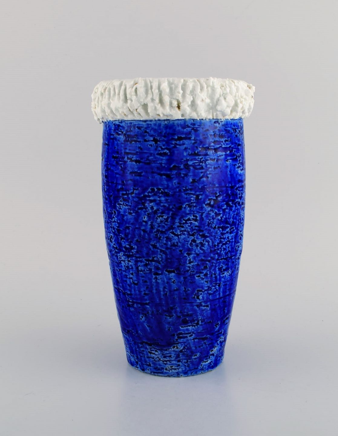 Gunnar Nylund for Rörstrand. Chamotte vase i glaseret keramik. Smuk glasur i blå nuancer. 1950'erne. Måler : 21,5 x 12,5 cm. Stemplet. I flot stand.