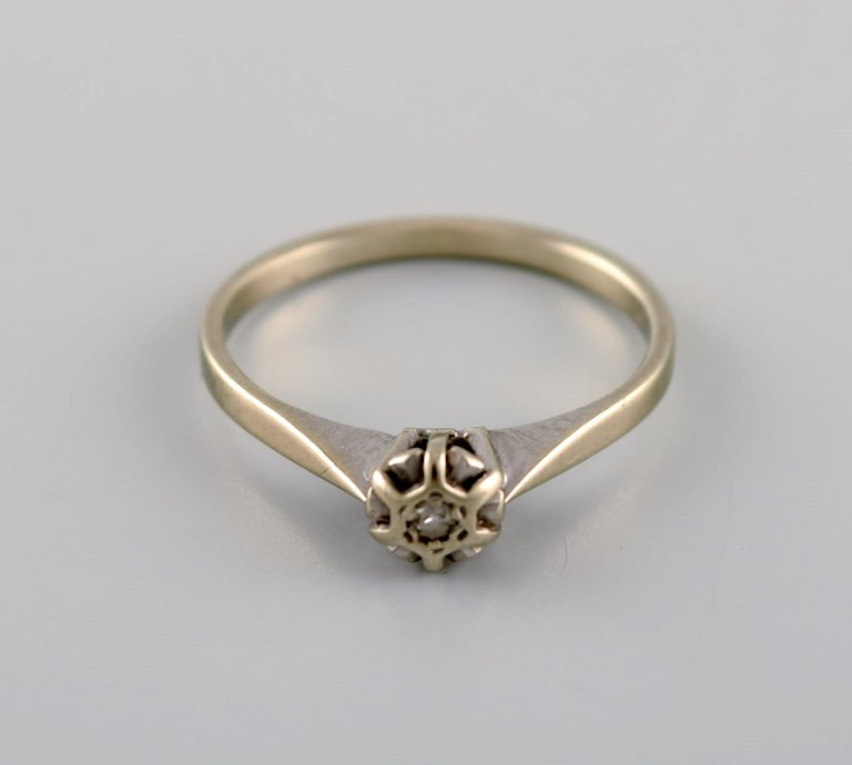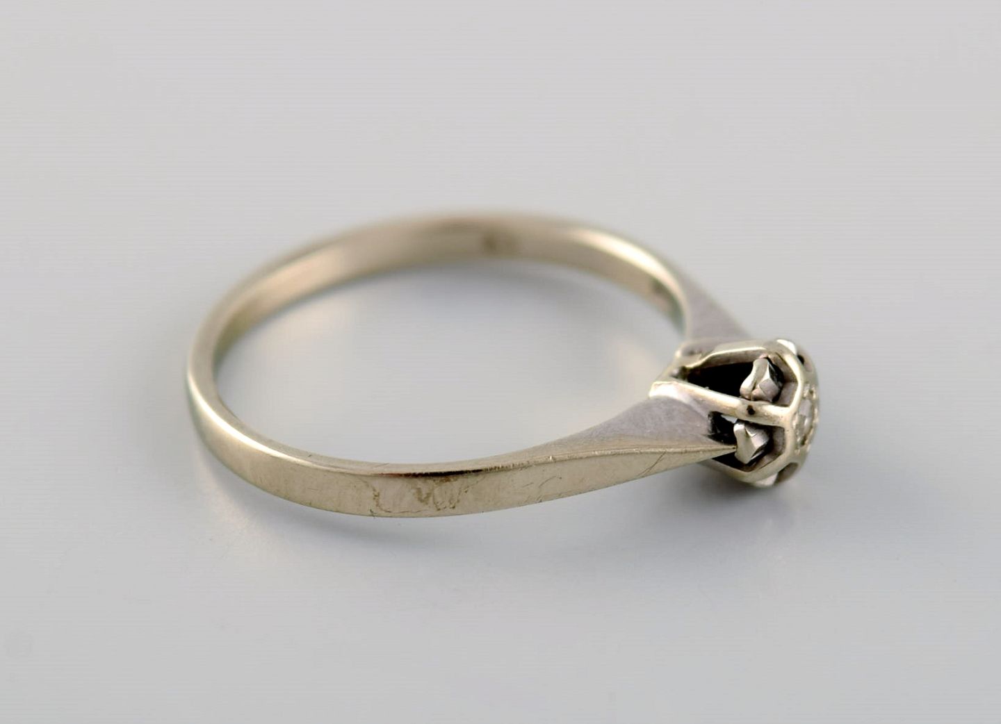 Svensk guldsmed. Vintage ring i 18 karat hvid guld prydet med diamant. Midt 1900-tallet.