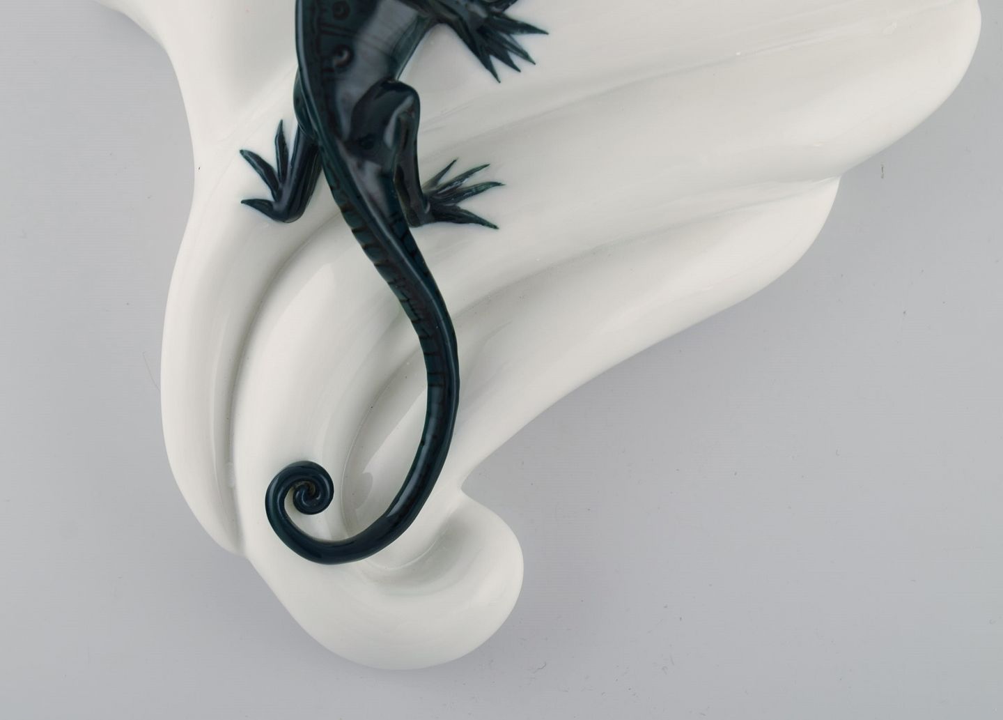 Karl Ens, Tyskland. Antik art nouveau urtepotteskjuler til vægophæng modelleret med firben. Dateret 1900-1919. Måler: 21 x 19 cm. I flot stand. Stemplet.