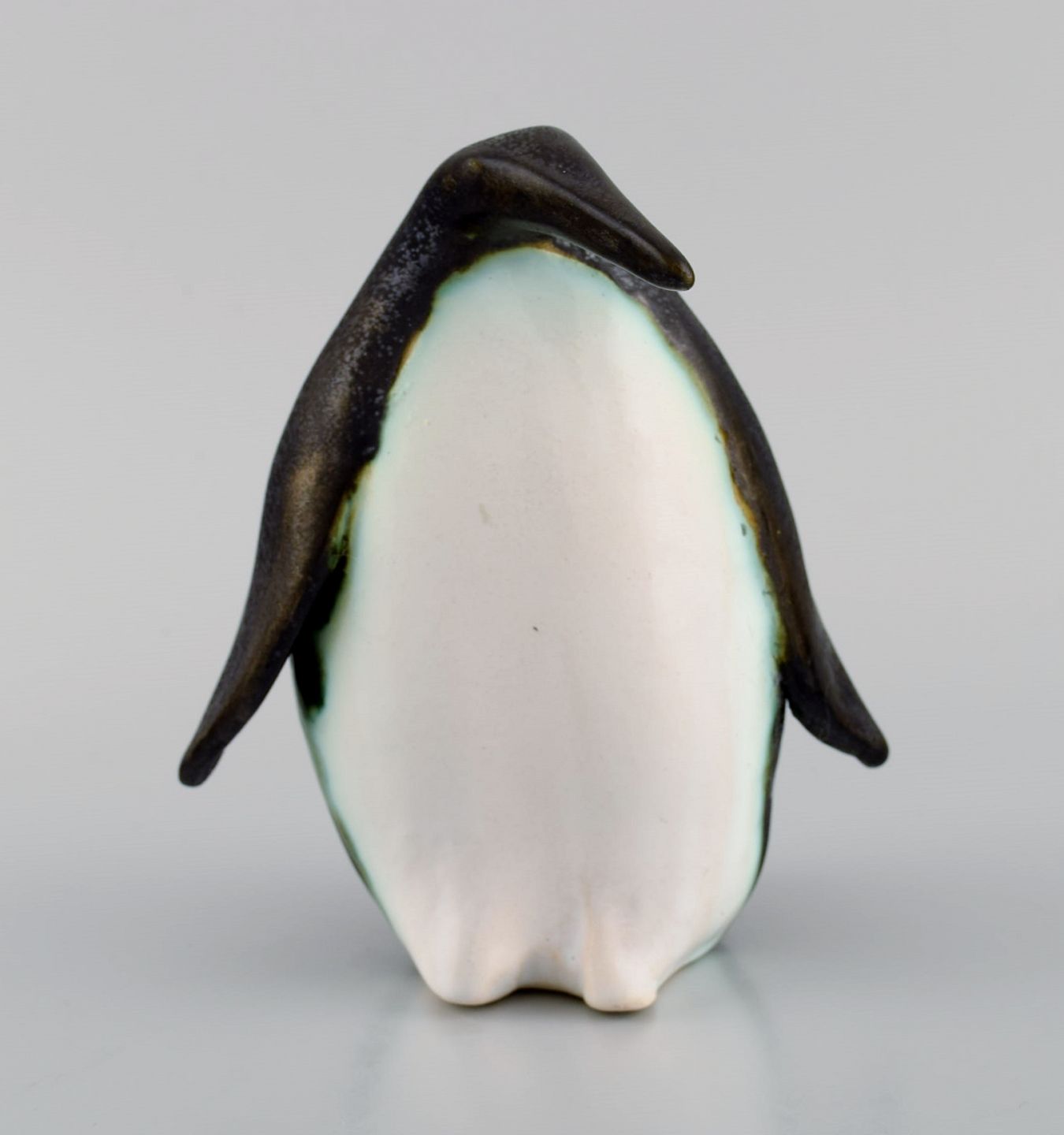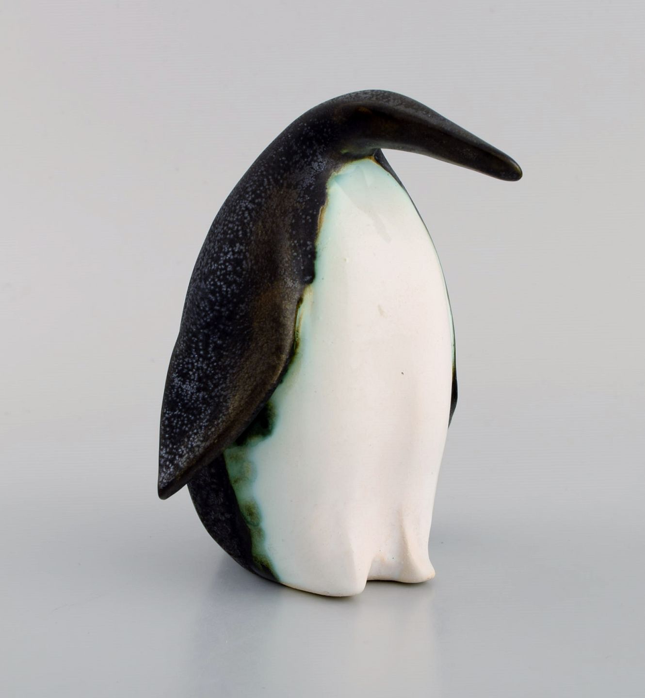 Europæisk studiokeramiker. Unika pingvin i glaseret keramik. 1980'erne. Måler: 14,5 x 9,5 cm. I flot stand. Stemplet.