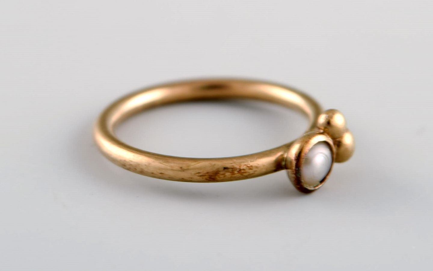 Skandinavisk guldsmed. Vintage ring i 8 karat guld prydet med kulturperle. Midt 1900-tallet.