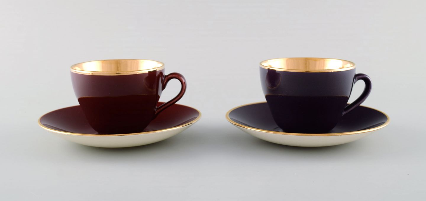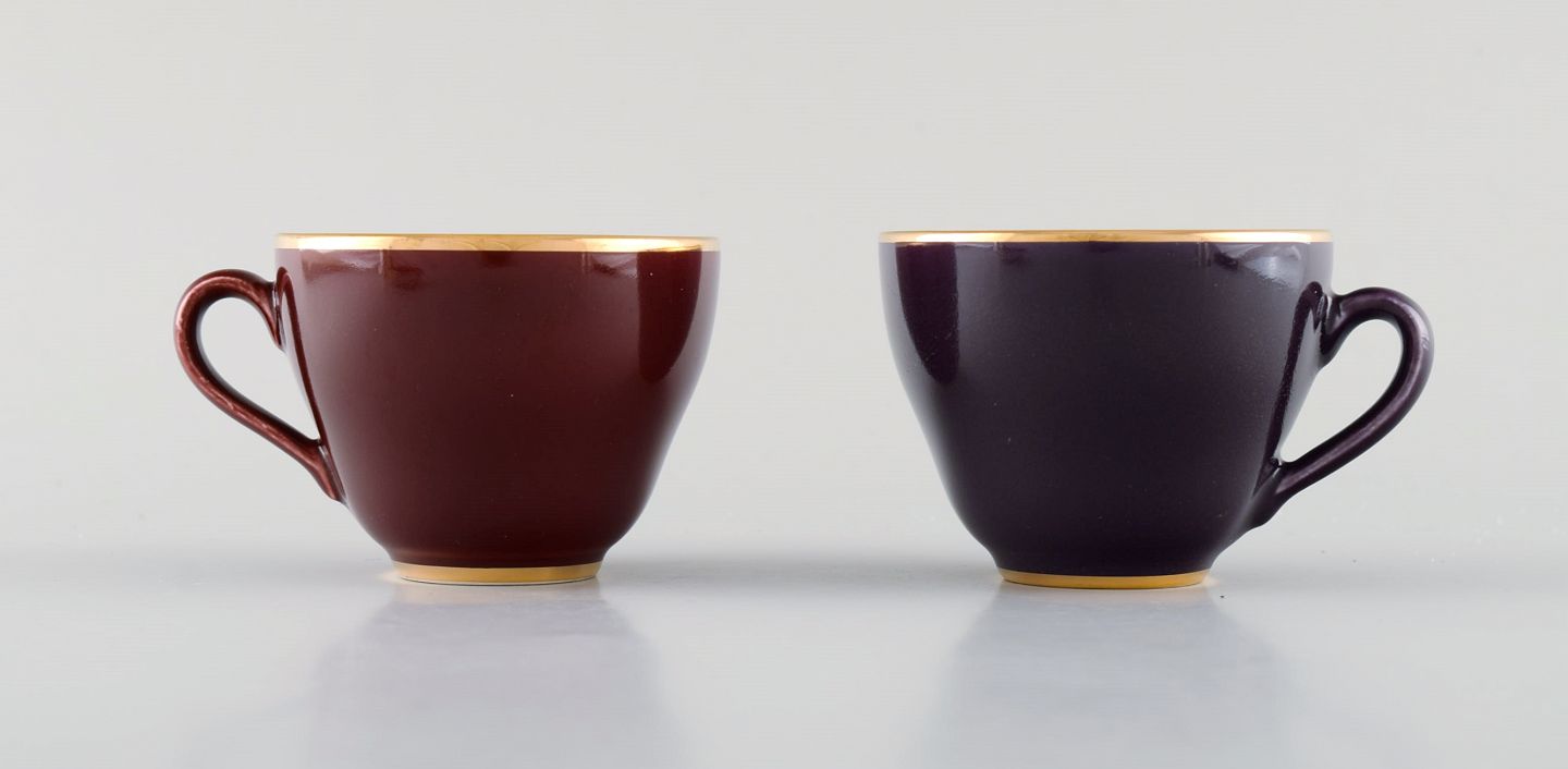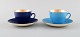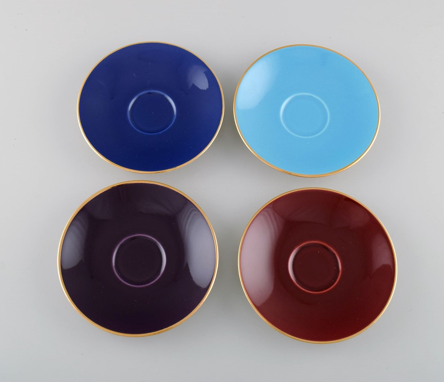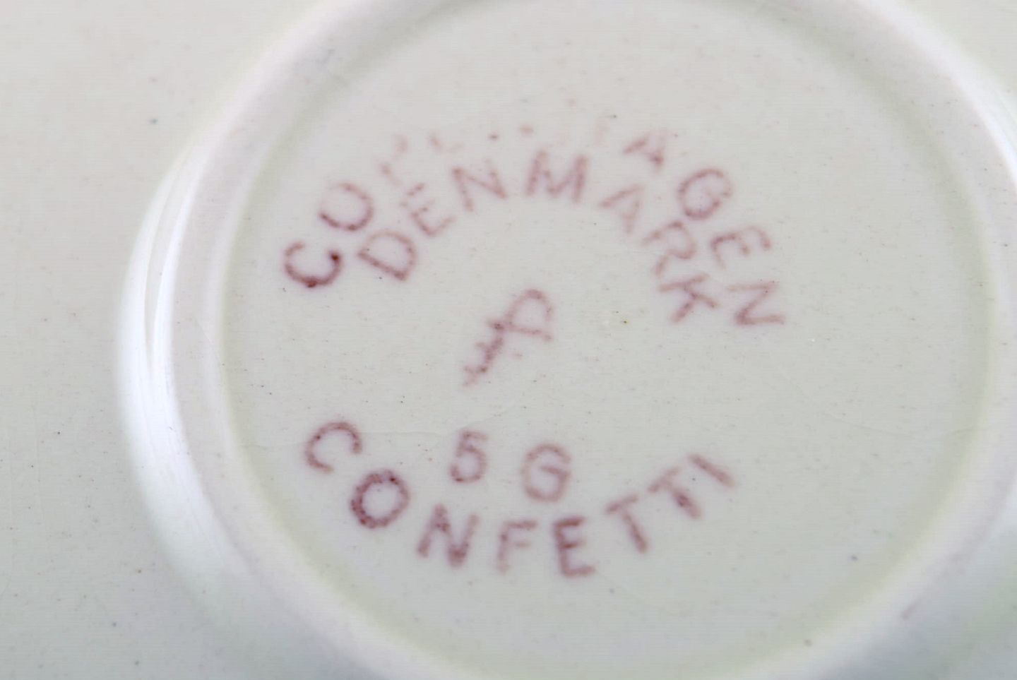 Fire Royal Copenhagen / Aluminia Confetti kaffekopper med underkopper i glaseret fajance. Midt 1900-tallet. Koppen måler: 7 x 5,3 cm. Underkop diameter: 12 cm. I flot stand. Stemplet. 1. Sortering.
