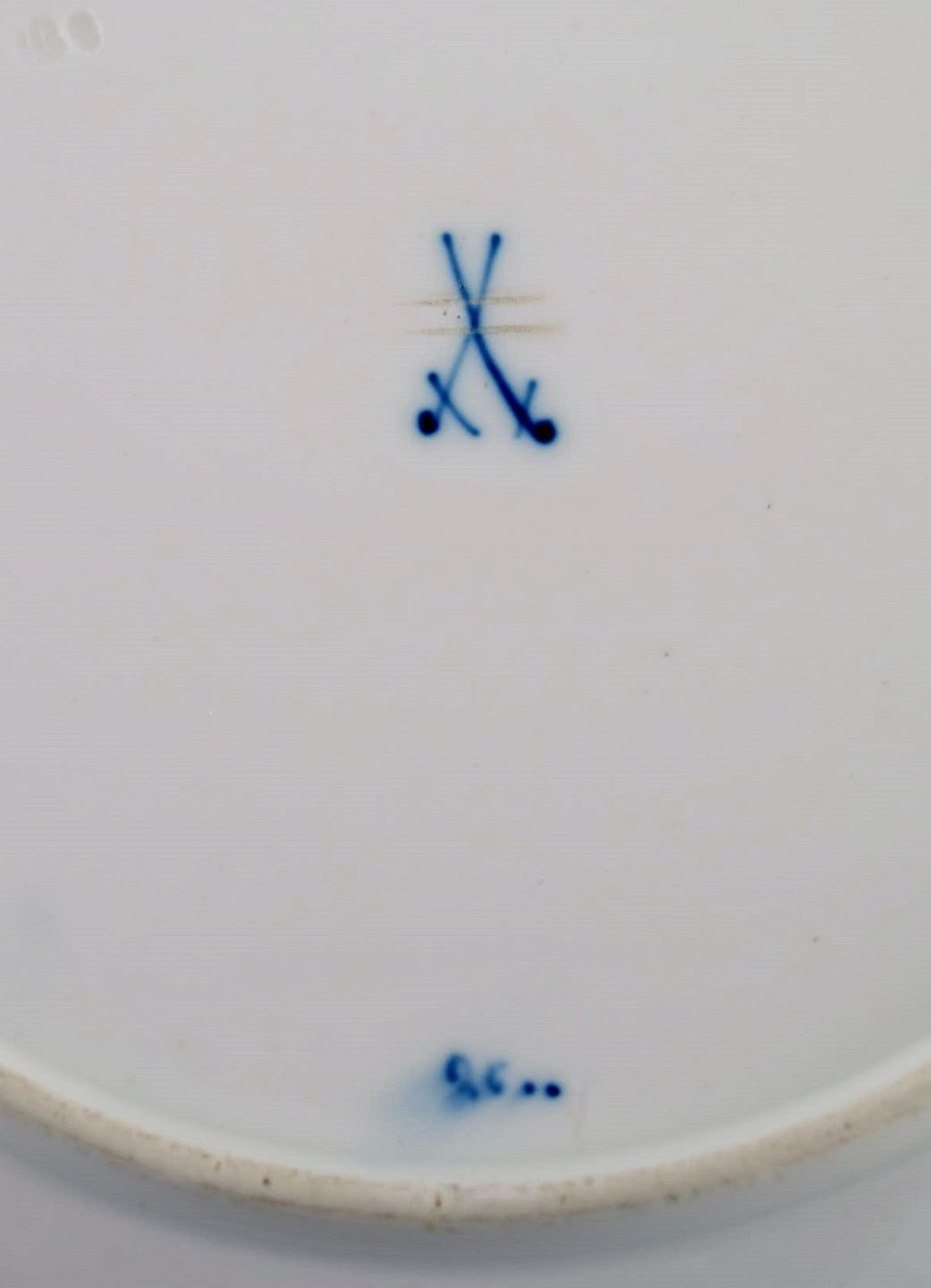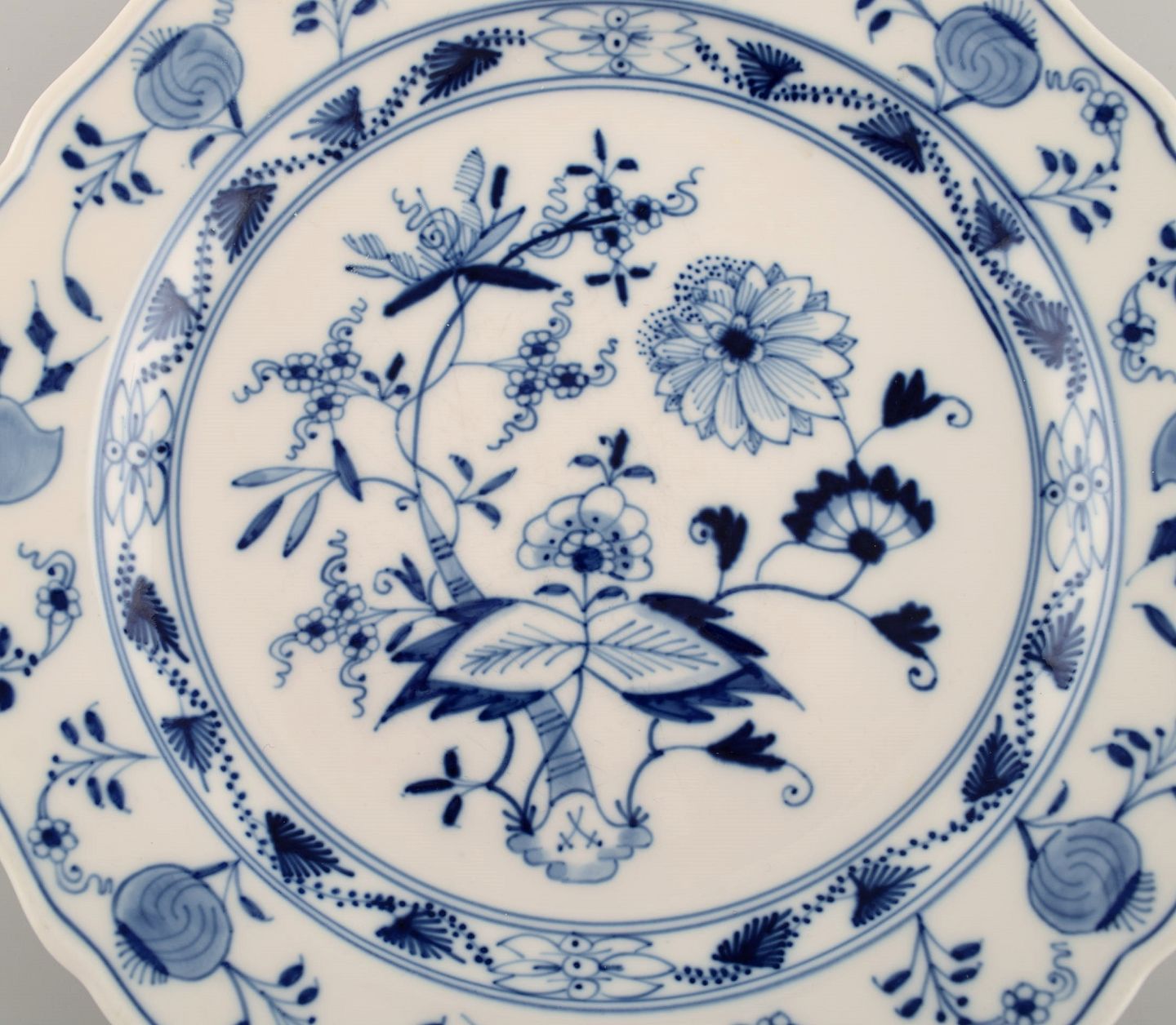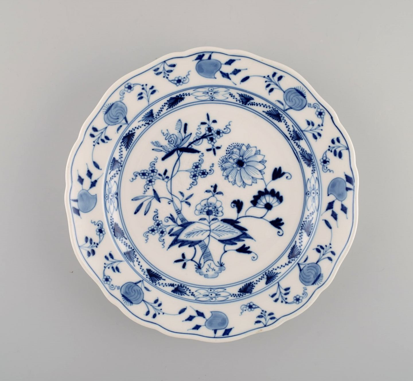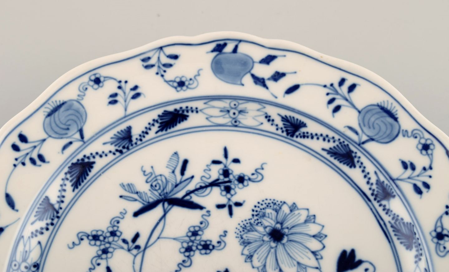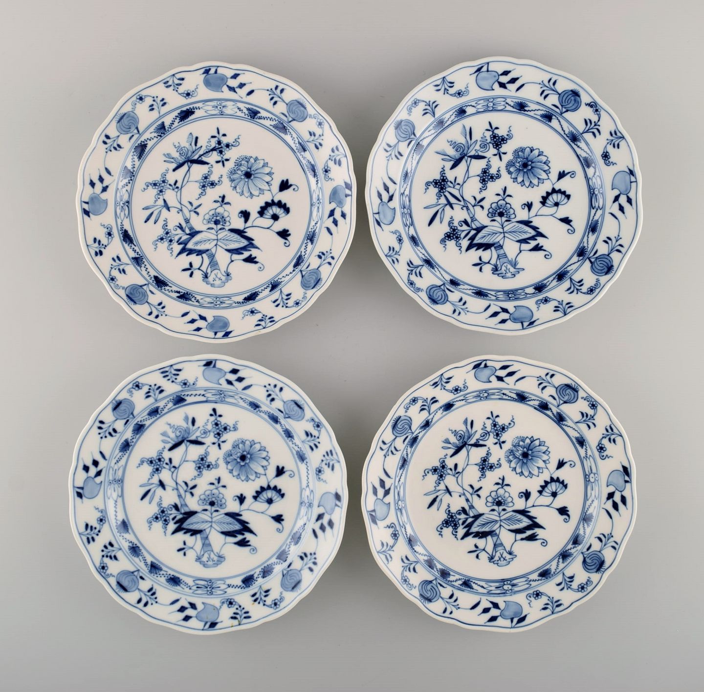 Fire antikke Meissen Løgmønstret frokosttallerkener i håndmalet porcelæn. Tidligt 1900-tallet. Diameter: 21,2 cm. Stemplet. I flot stand. 3. Sortering.