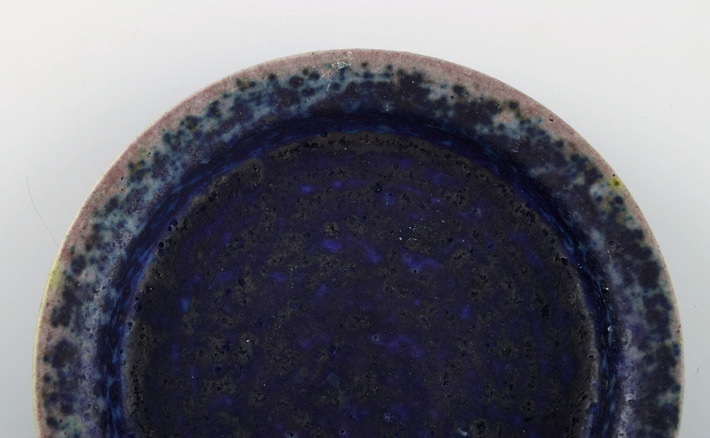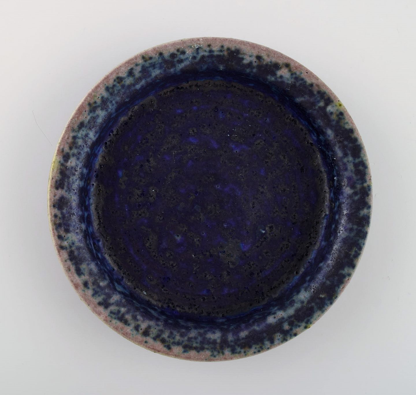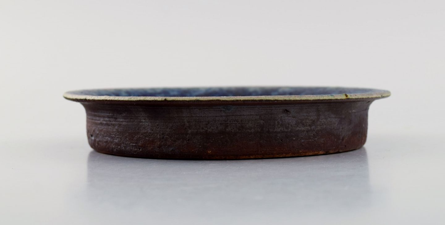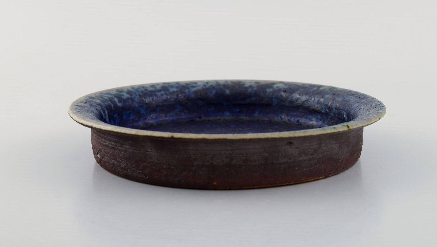 Liisa Hallamaa for Arabia. Lav skål i glaseret keramik. Smuk glasur i blå nuancer. Finland, 1960/70'erne. Måler: 15,5 x 2,5 cm. I flot stand. Signeret.