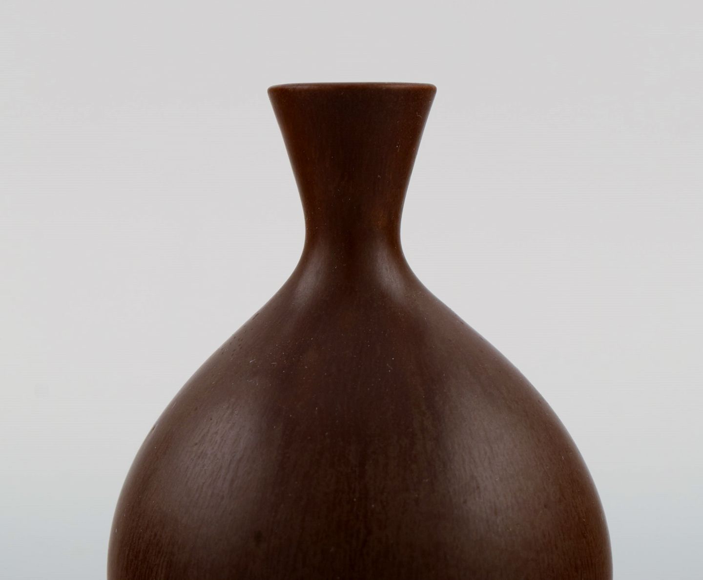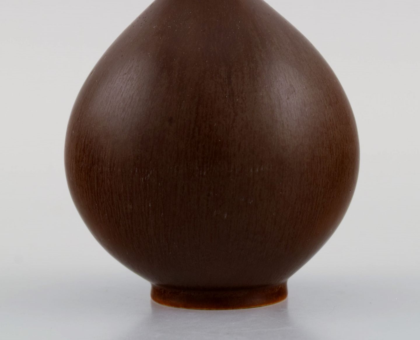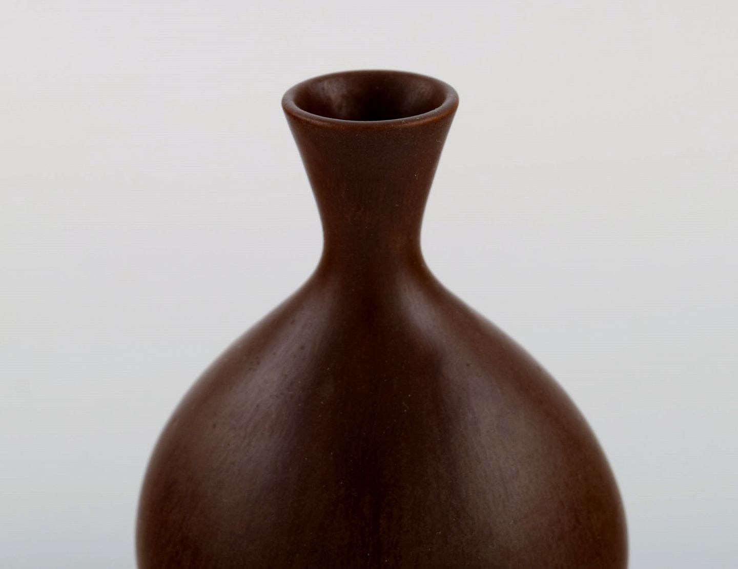 Berndt Friberg (1899-1981) for Gustavsberg Studiohand. Vase i glaseret stentøj. Smuk glasur i brune nuancer. 1960'erne. Måler: 13,3 x 9,5 cm. I flot stand. Stemplet.