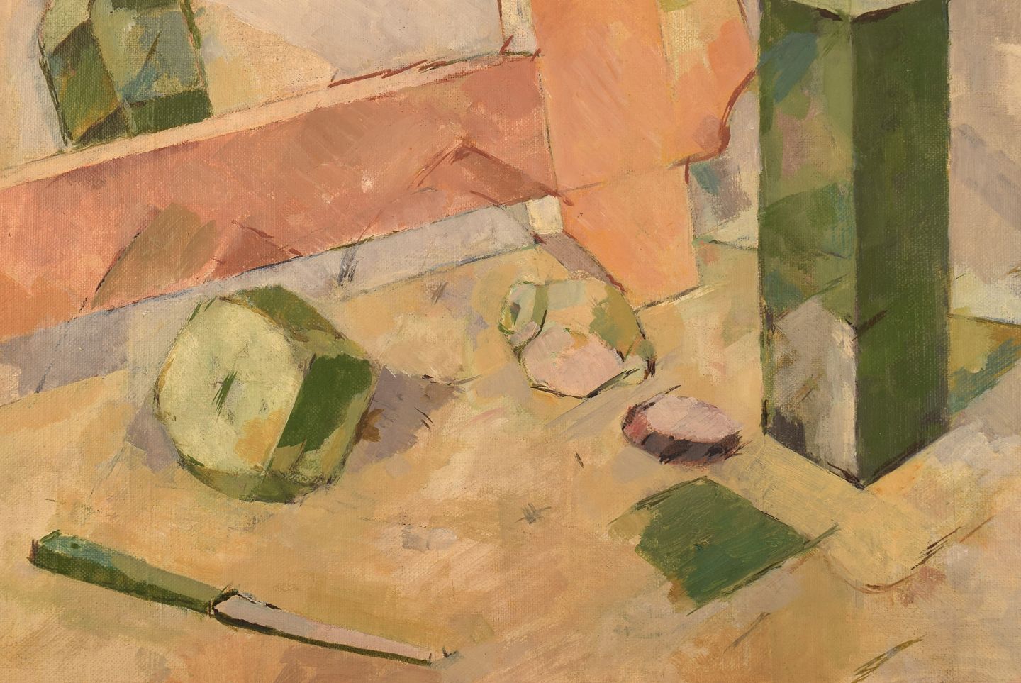 Ubekendt kunstner. Olie på plade. Modernistisk stilleben. 1960/70'erne. Pladen måler: 44 x 34 cm. Rammen måler: 3 cm. I flot stand.