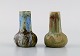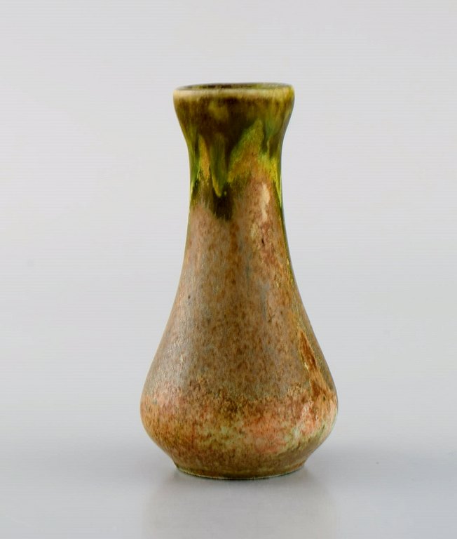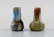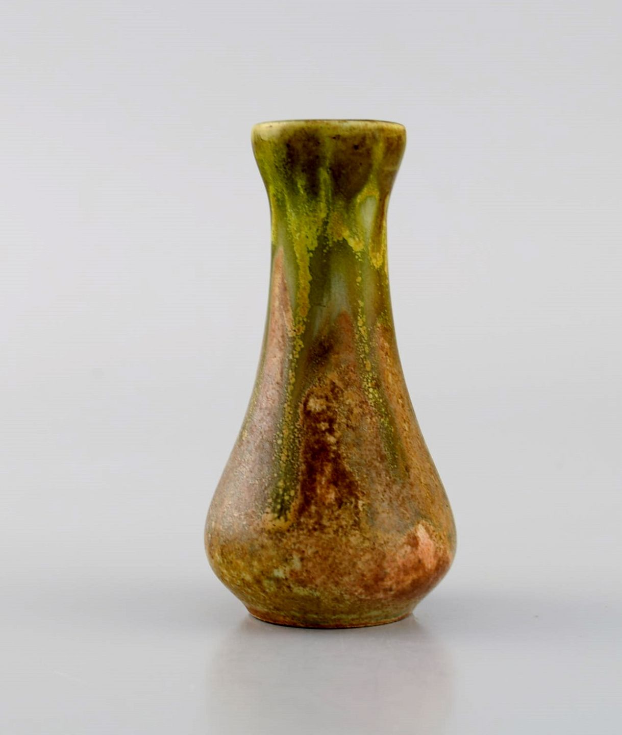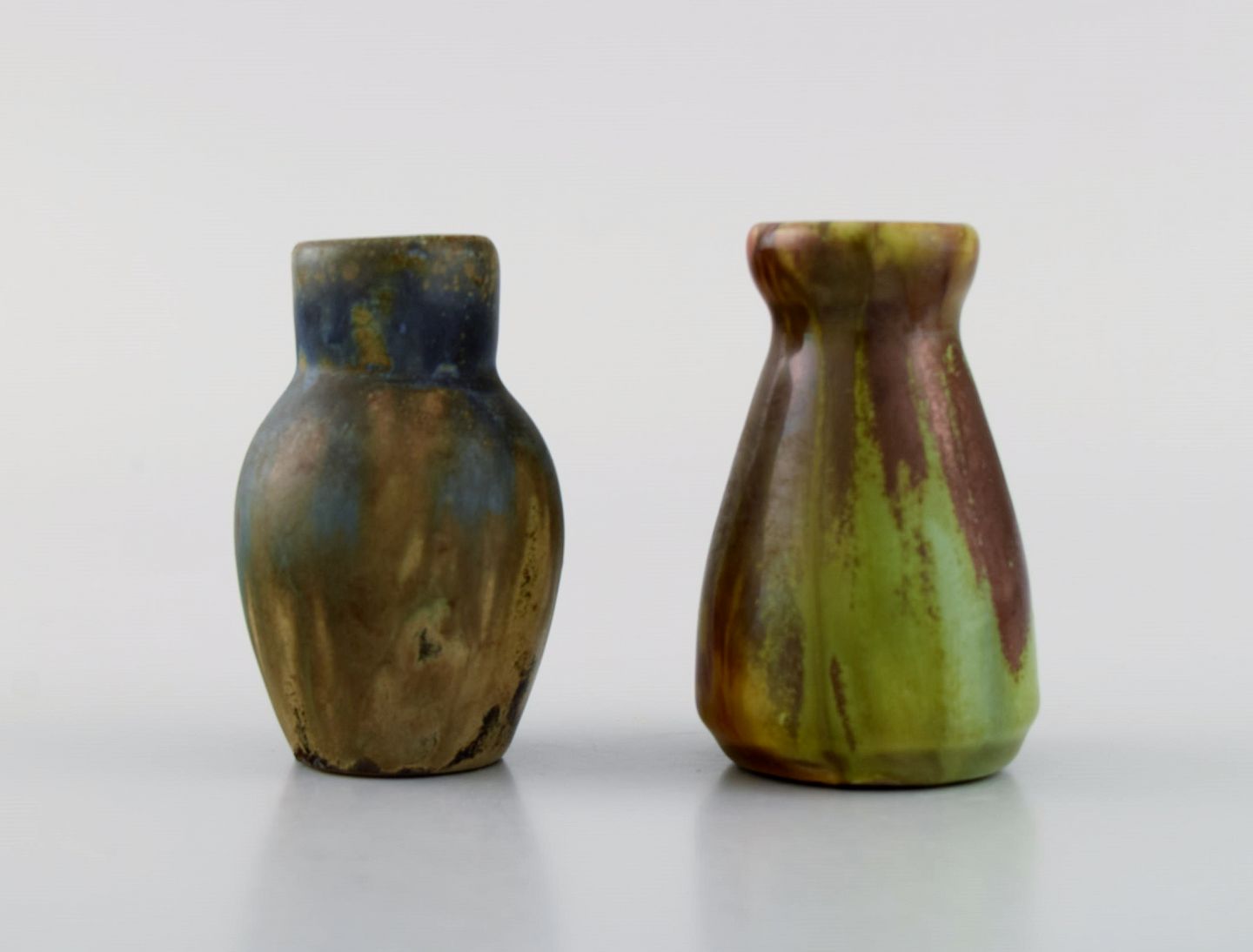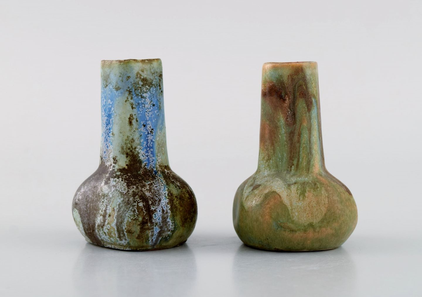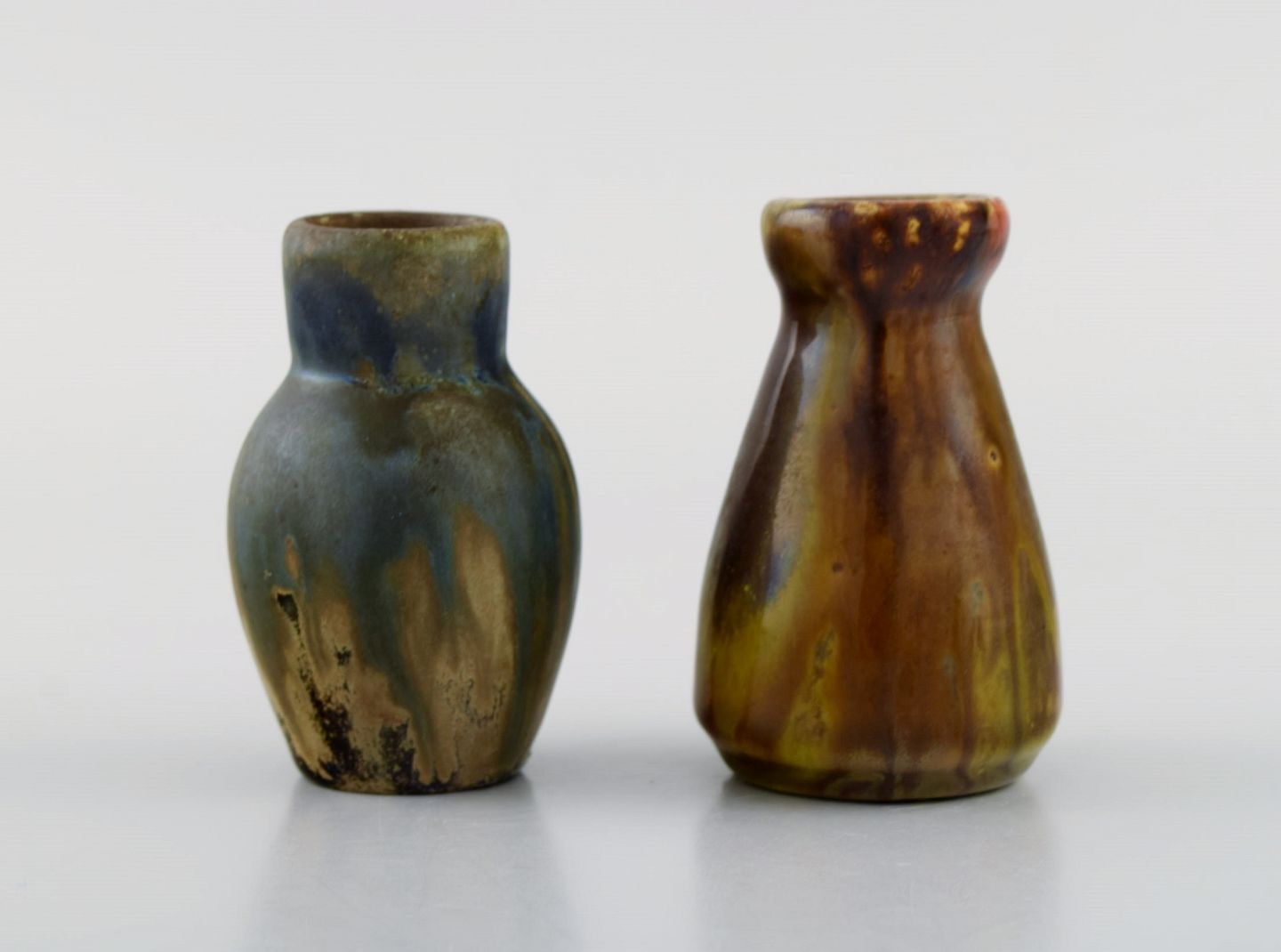 Fem belgiske miniature vaser i glaseret keramik. Midt 1900-tallet. Største måler: 8,2 x 4,5 cm. I flot stand.