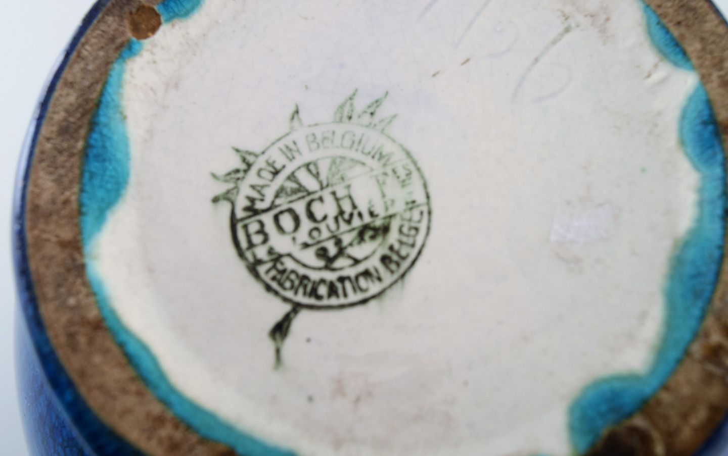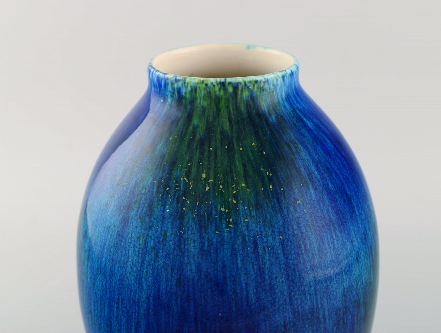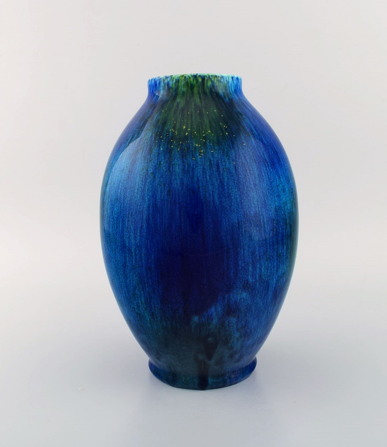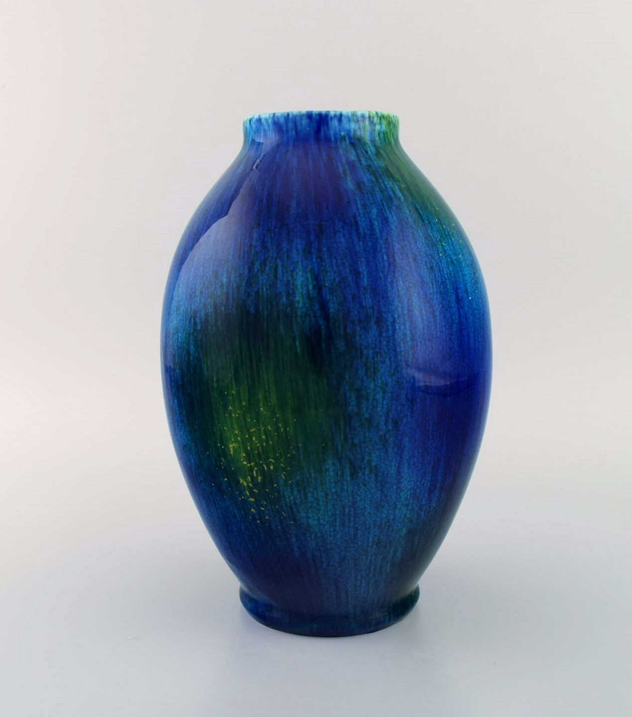 Boch Freres Keramis, Belgien. Art deco vase i glaseret keramik. Smuk glasur i blå nuancer. 1920/30'erne.