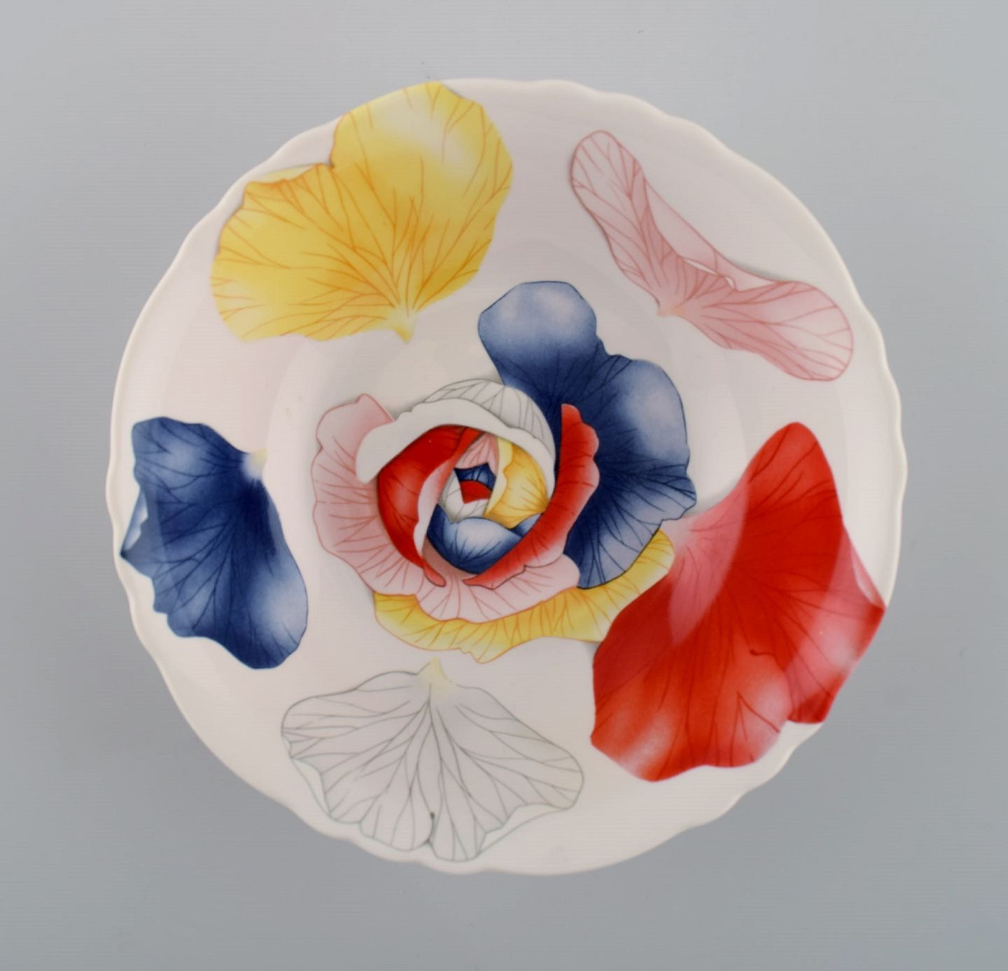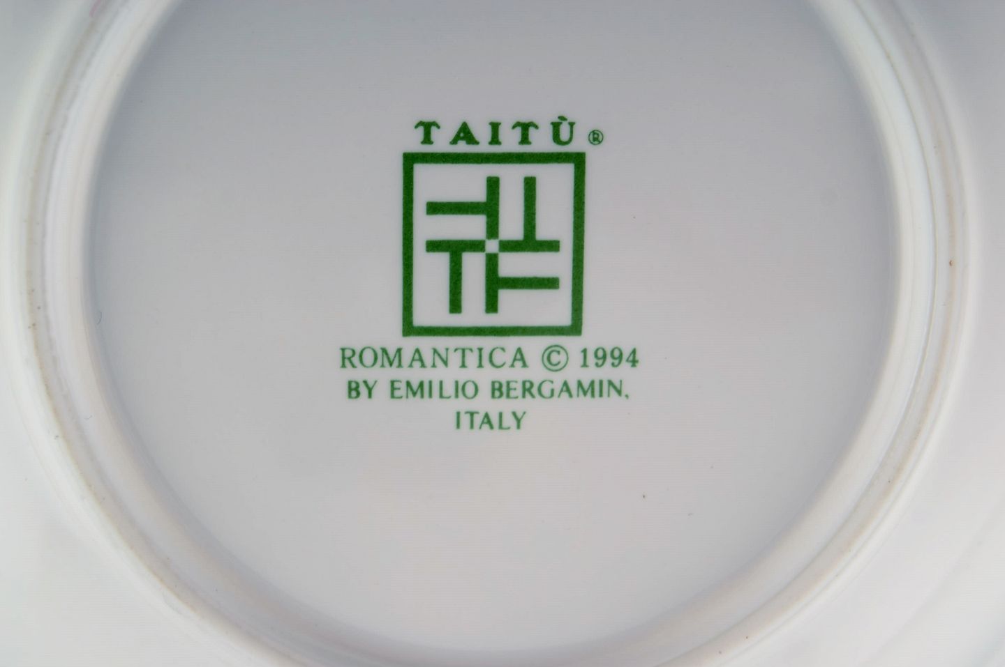 Emilio Bergamin for Taitł. Otte dybe Romantica tallerkener i porcelęn med blomster. Italiensk design. Dateret 1994. Måler: 16,2 x 4,5 cm. I flot stand. Stemplet.
