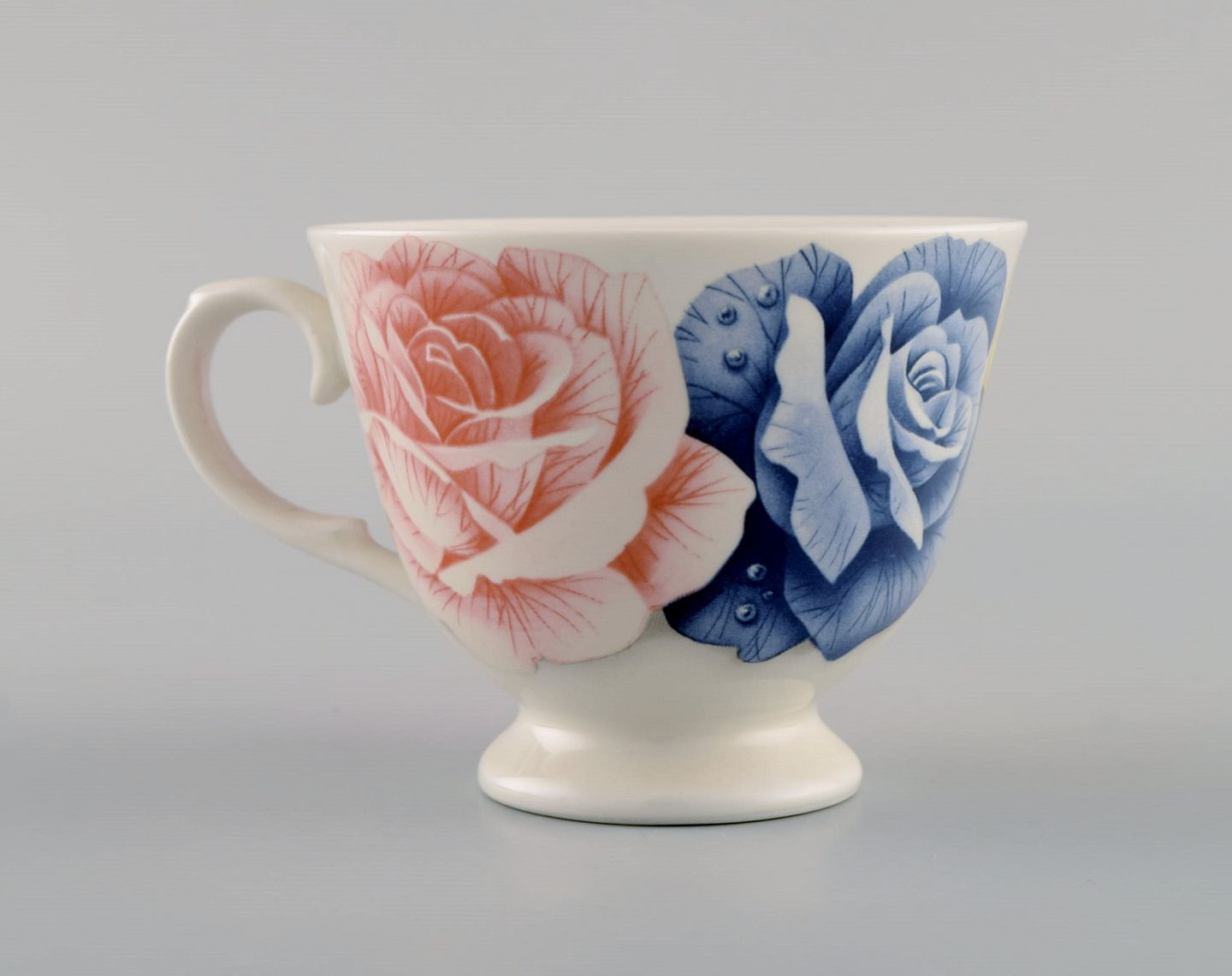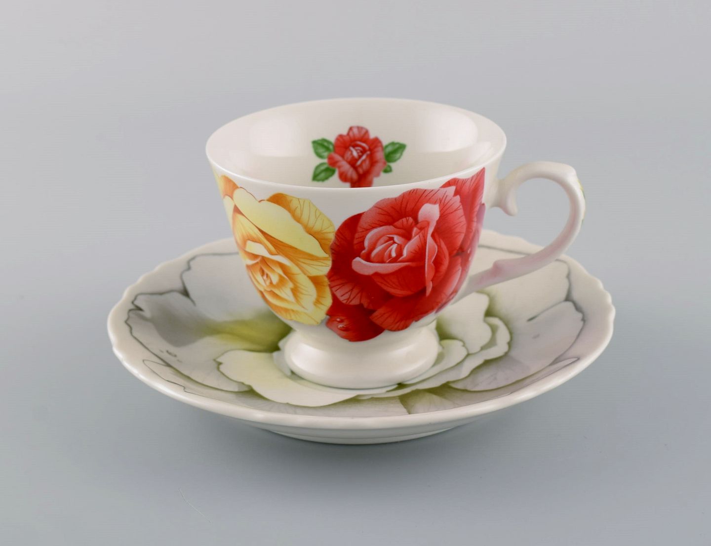 Emilio Bergamin for Taitł. To Romantica kaffekopper med underkopper i porcelęn med blomster. Italiensk design. Dateret 1994. Koppen måler: 8,7 x 7 cm. Underkop diameter: 15,5 cm. I flot stand. Stemplet.