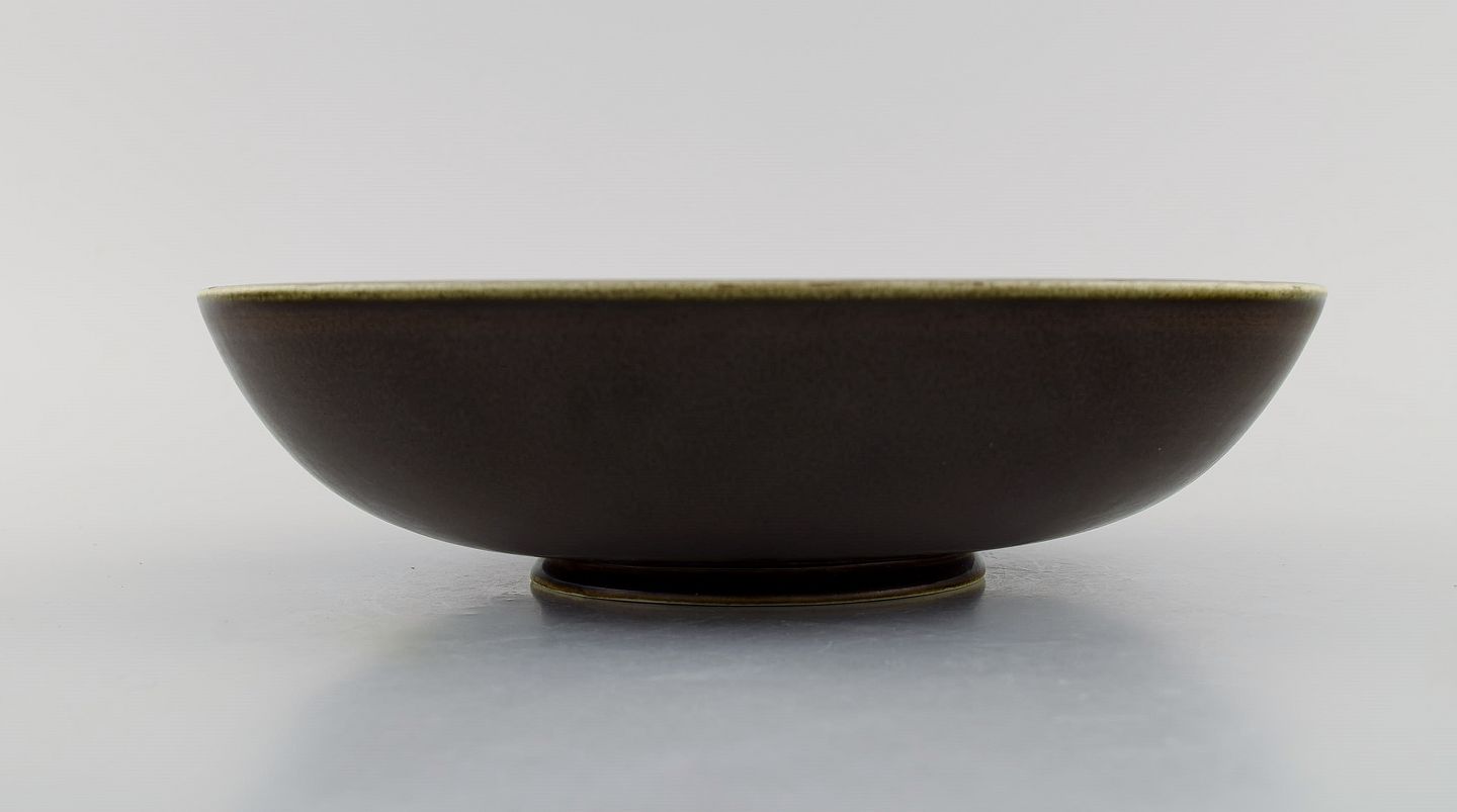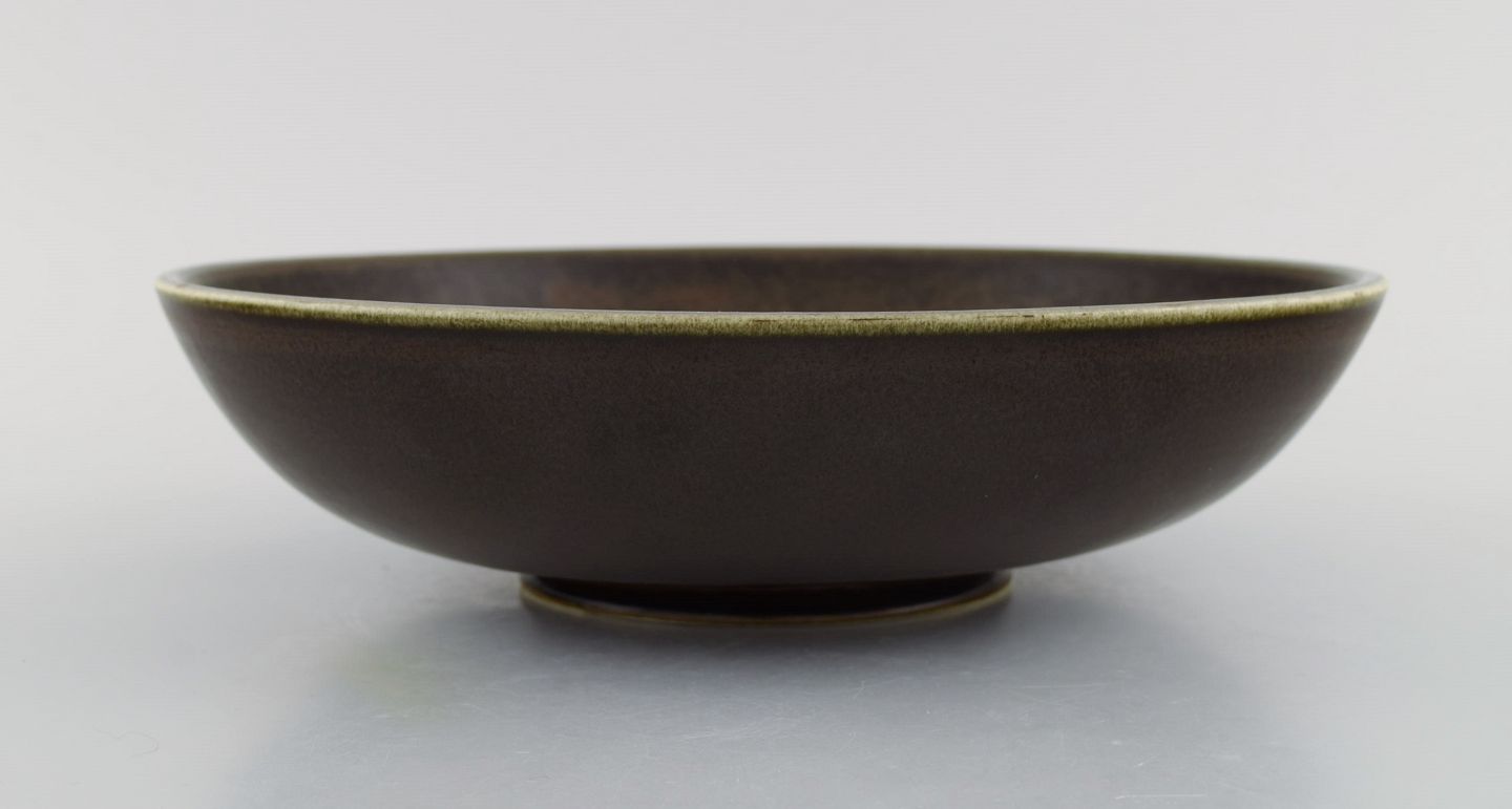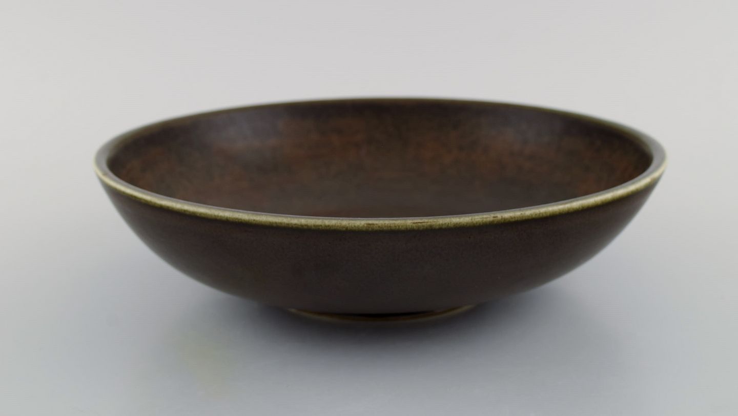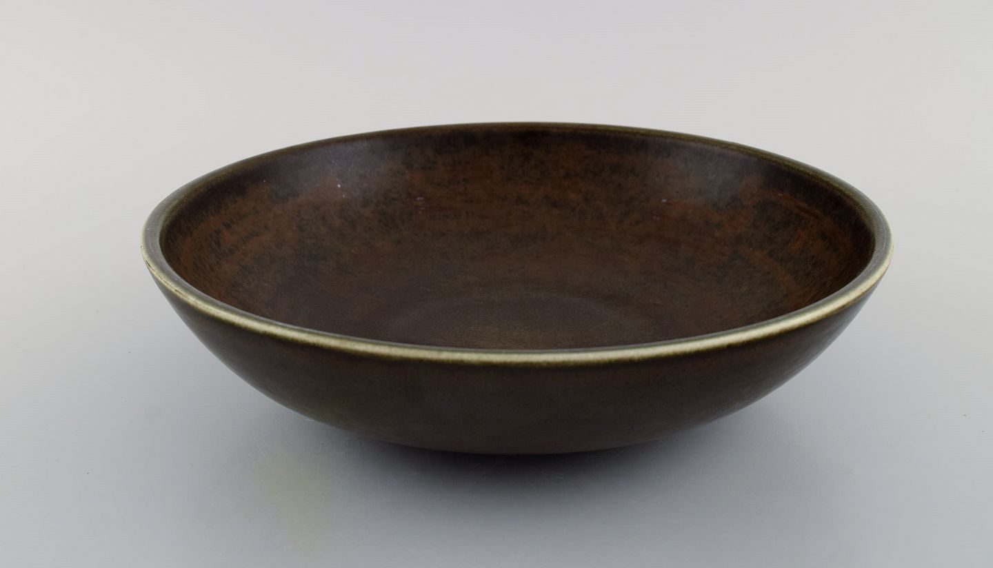 Rund Rörstrand skål i glaseret keramik. Smuk glasur i brune nuancer. Midt 1900-tallet. Måler: 25 x 6,5 cm. I flot stand. Signeret. 1. Sortering.