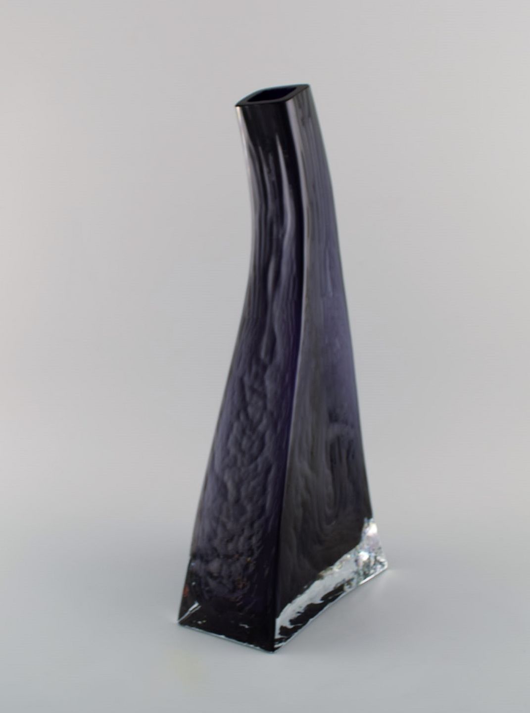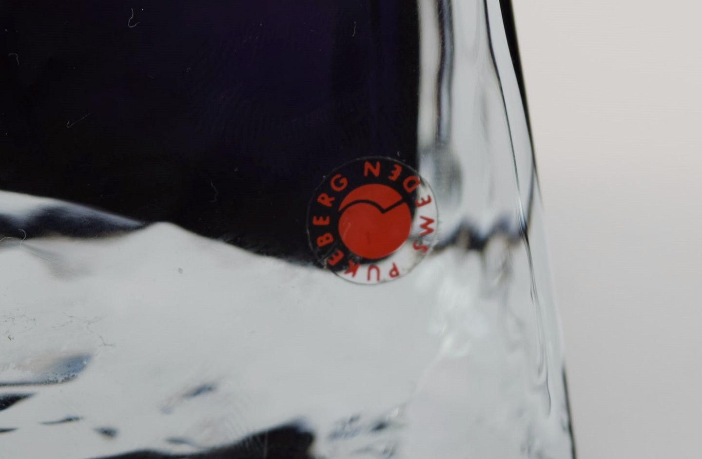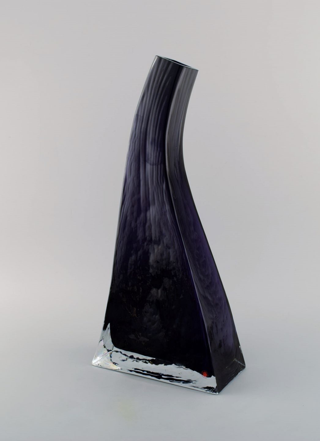 Stor modernistisk Pukeberg vase i mundblæst kunstglas. Svensk design, 1960/70'erne. Måler: 41,5 x 19,5 x 9 cm. Mærkat. I flot stand.