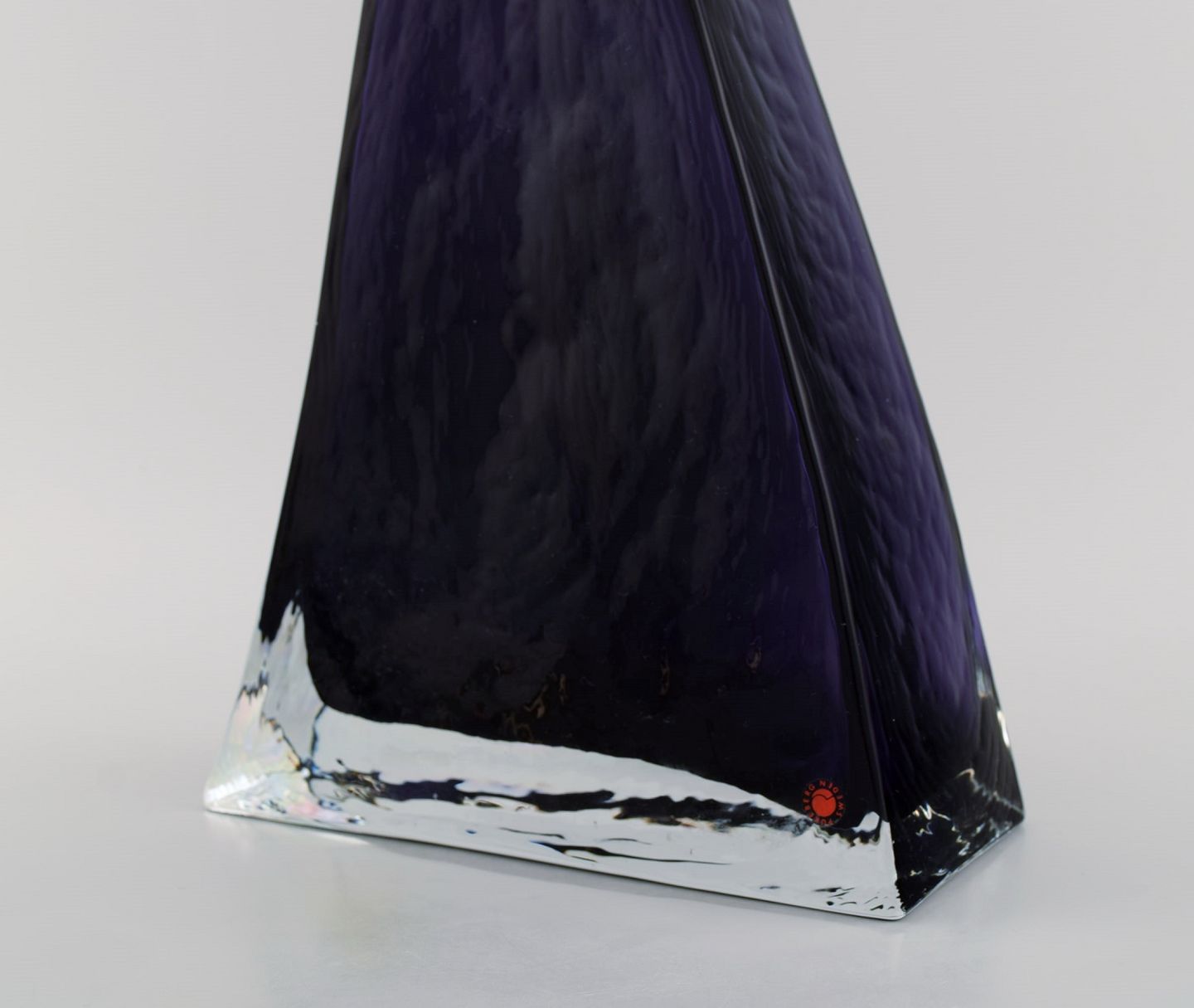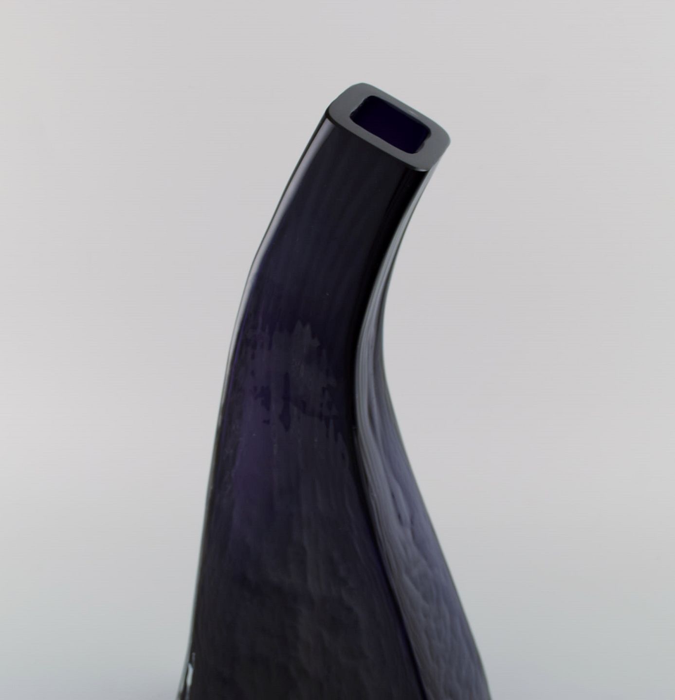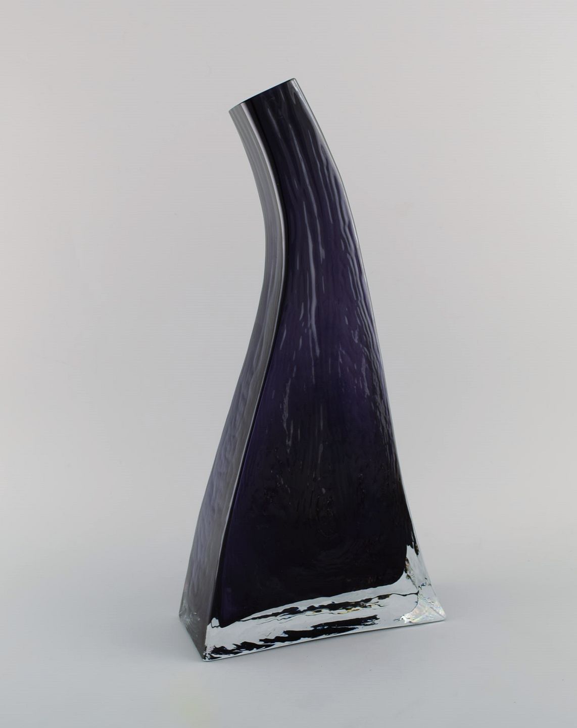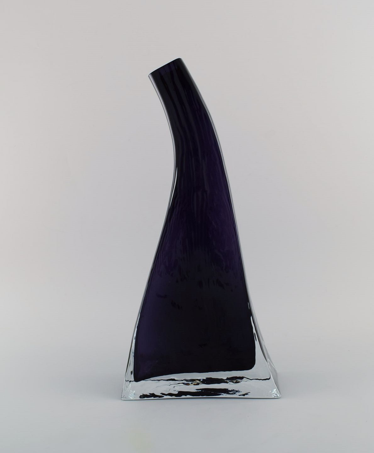 Stor modernistisk Pukeberg vase i mundblæst kunstglas. Svensk design, 1960/70'erne. Måler: 41,5 x 19,5 x 9 cm. Mærkat. I flot stand.