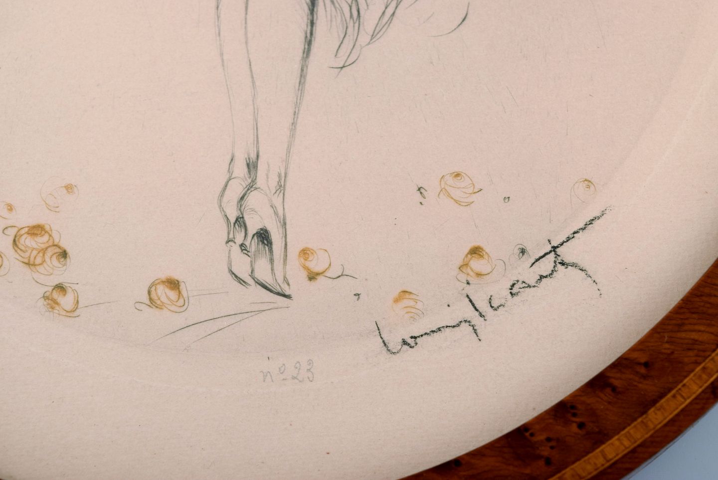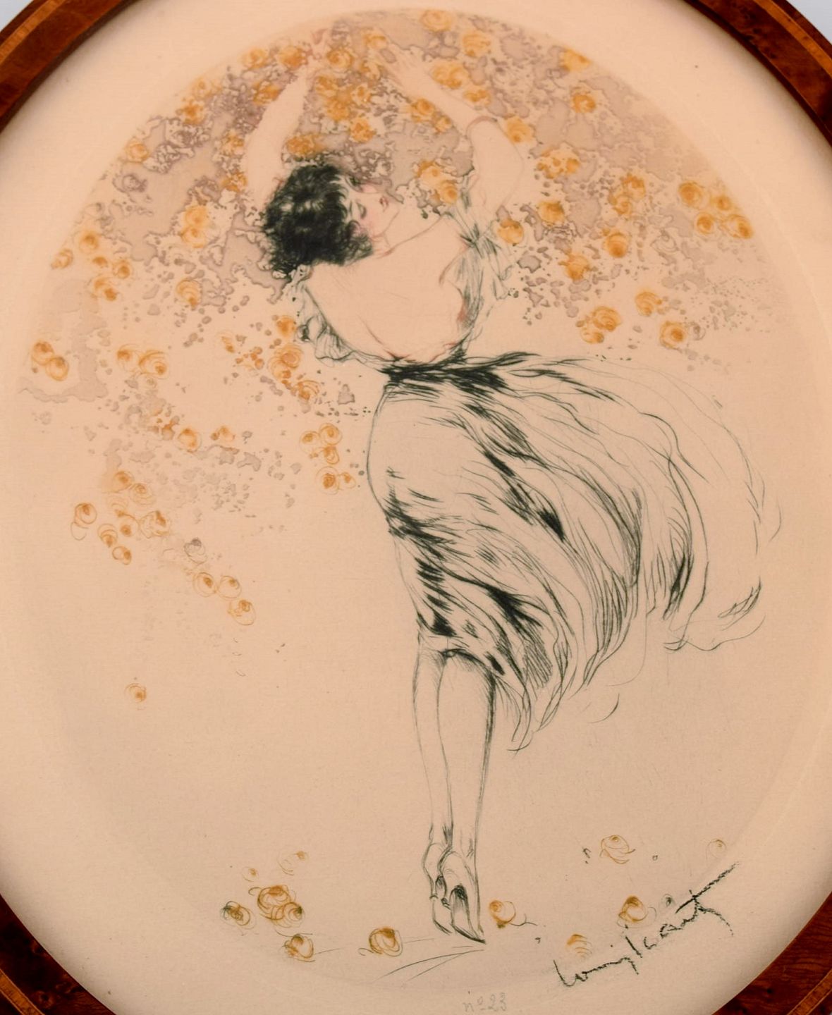 Louis Icart (1888-1950). Radering på papir. Halvnøgen kvinde plukker æbler. Ca 1920. Signeret med blyant. I flot stand. Lysmål: 24 x 19,5 cm. Totalmål: 29 x 23,5 cm. Rammen måler: 1,6 cm.